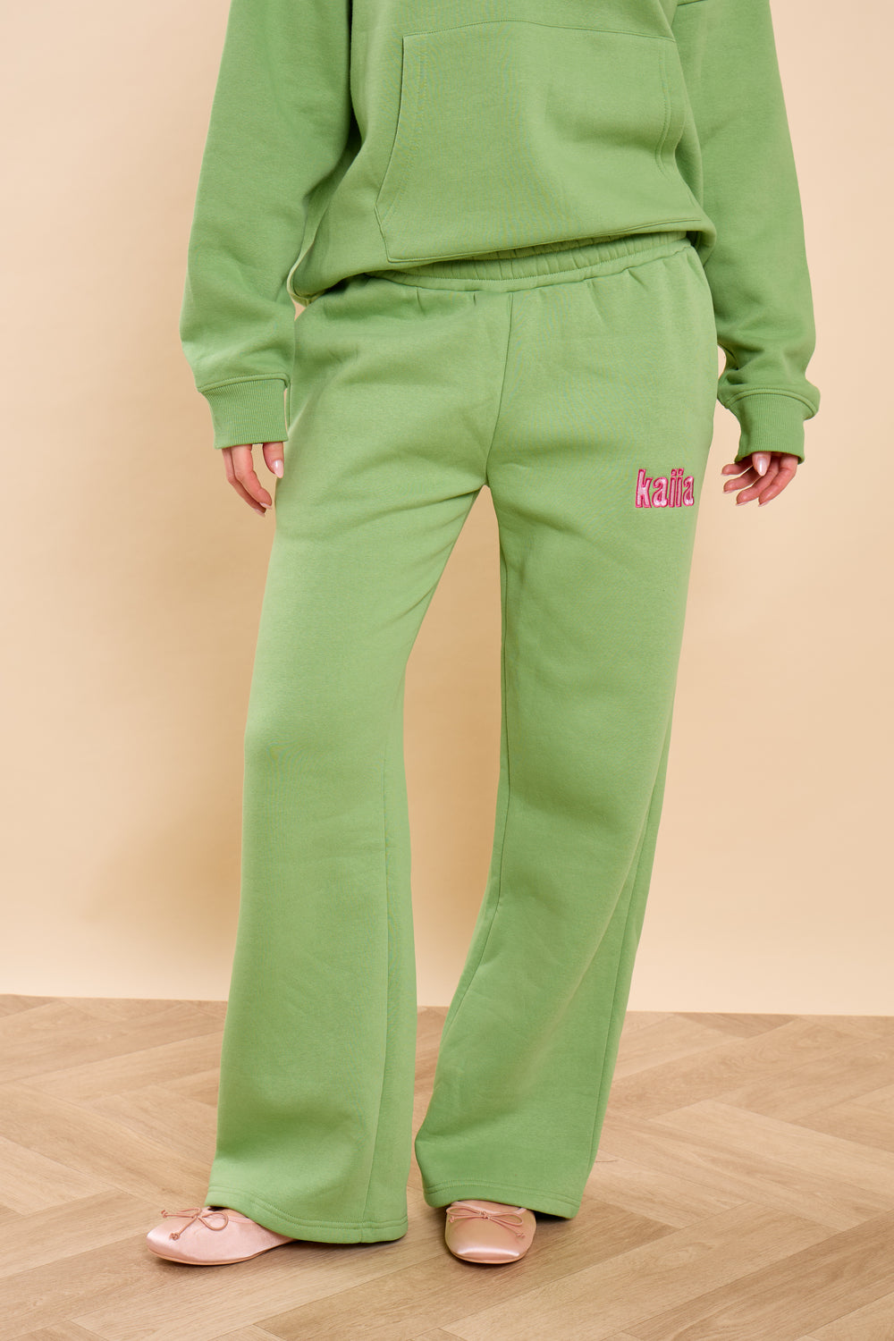 Kaiia Bubble Studio Wide Leg Joggers Matcha Latte
