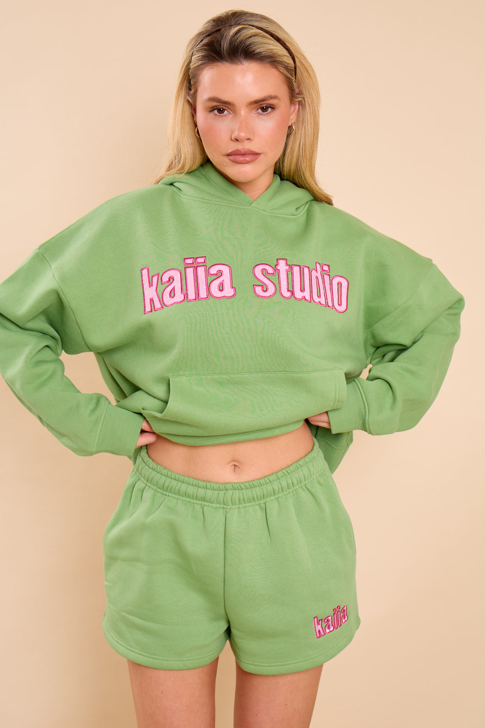 Kaiia Bubble Studio Mini Shorts Matcha Latte