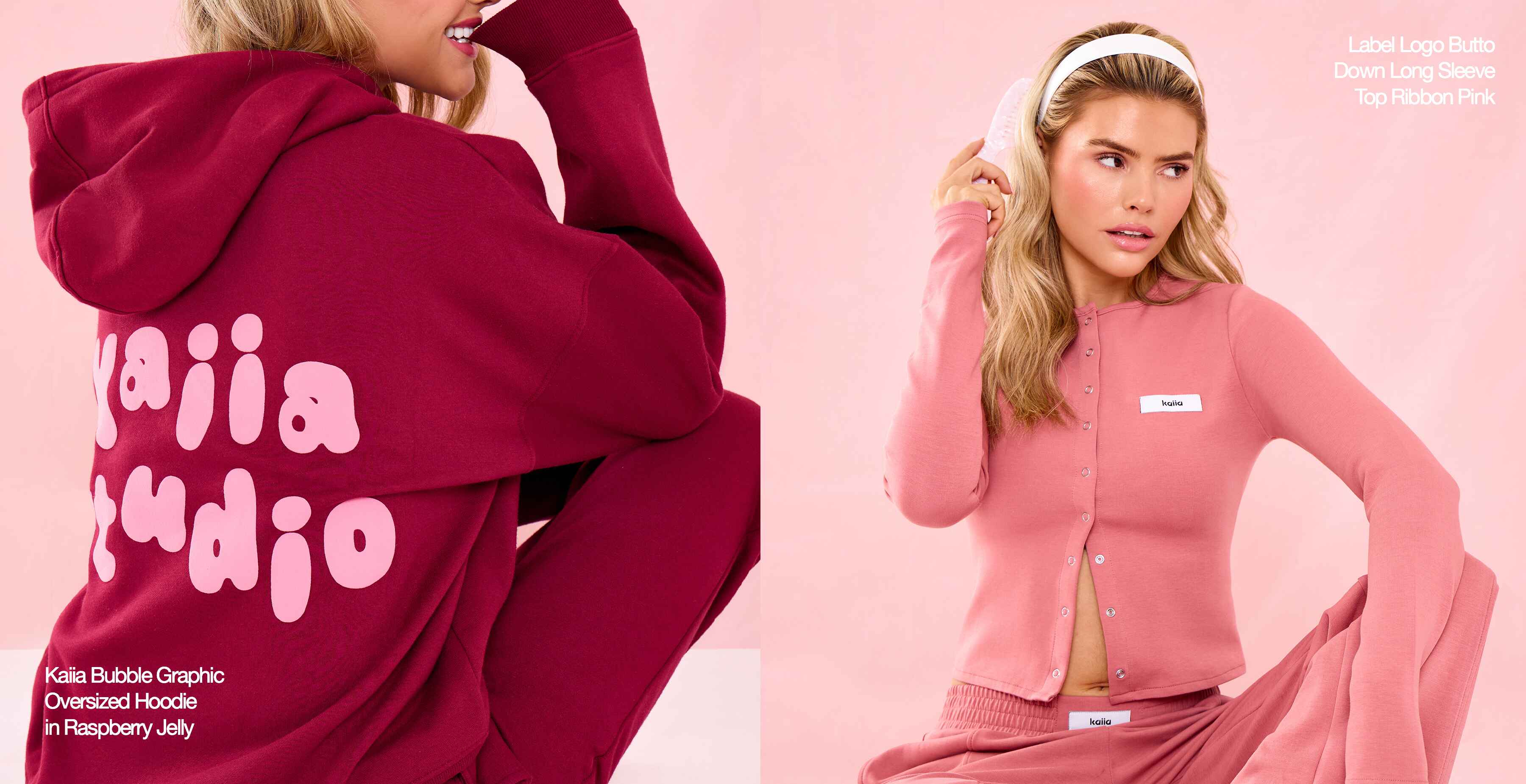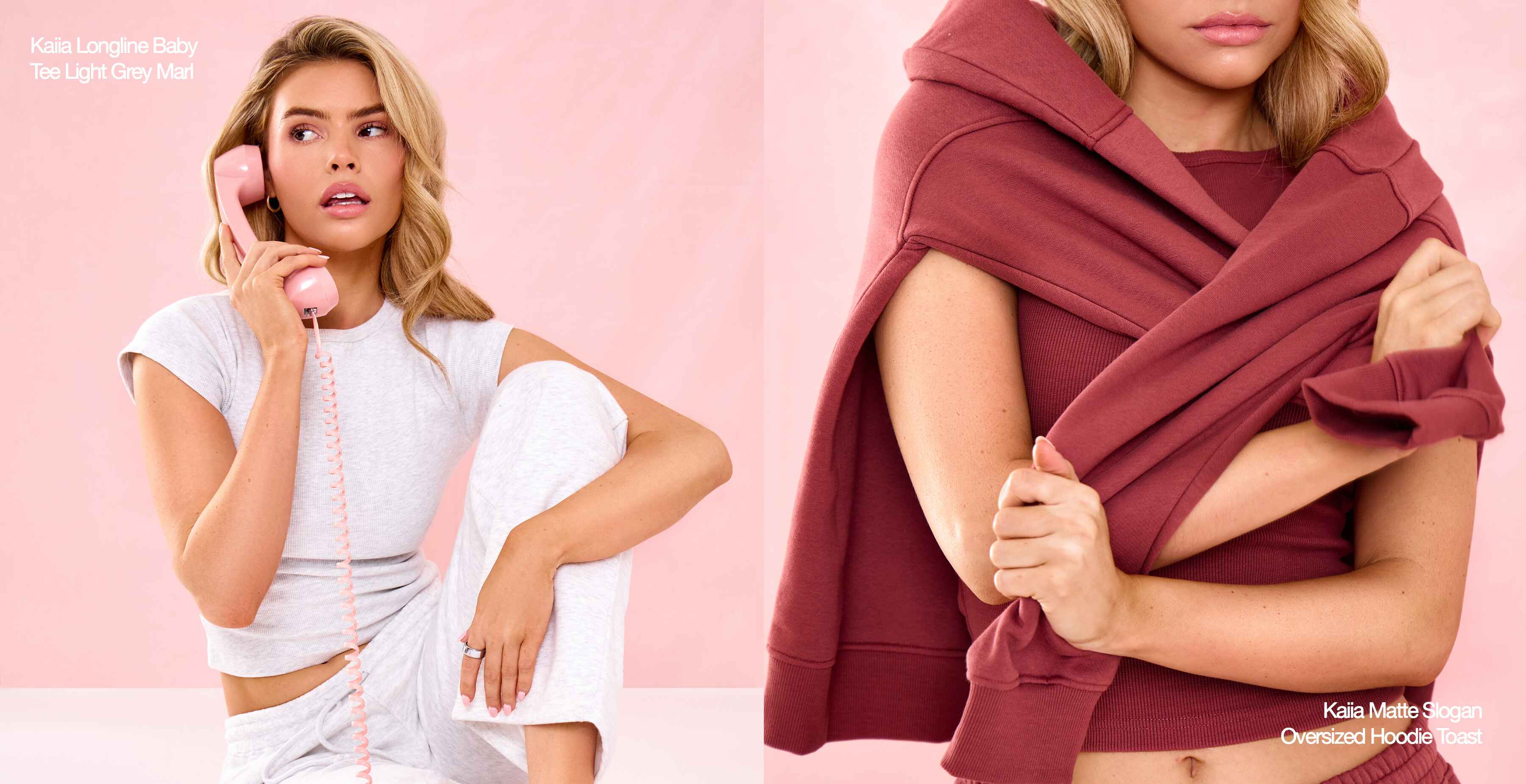 Kaiia Matte Slogan Oversized Hoodie Rosey Blush