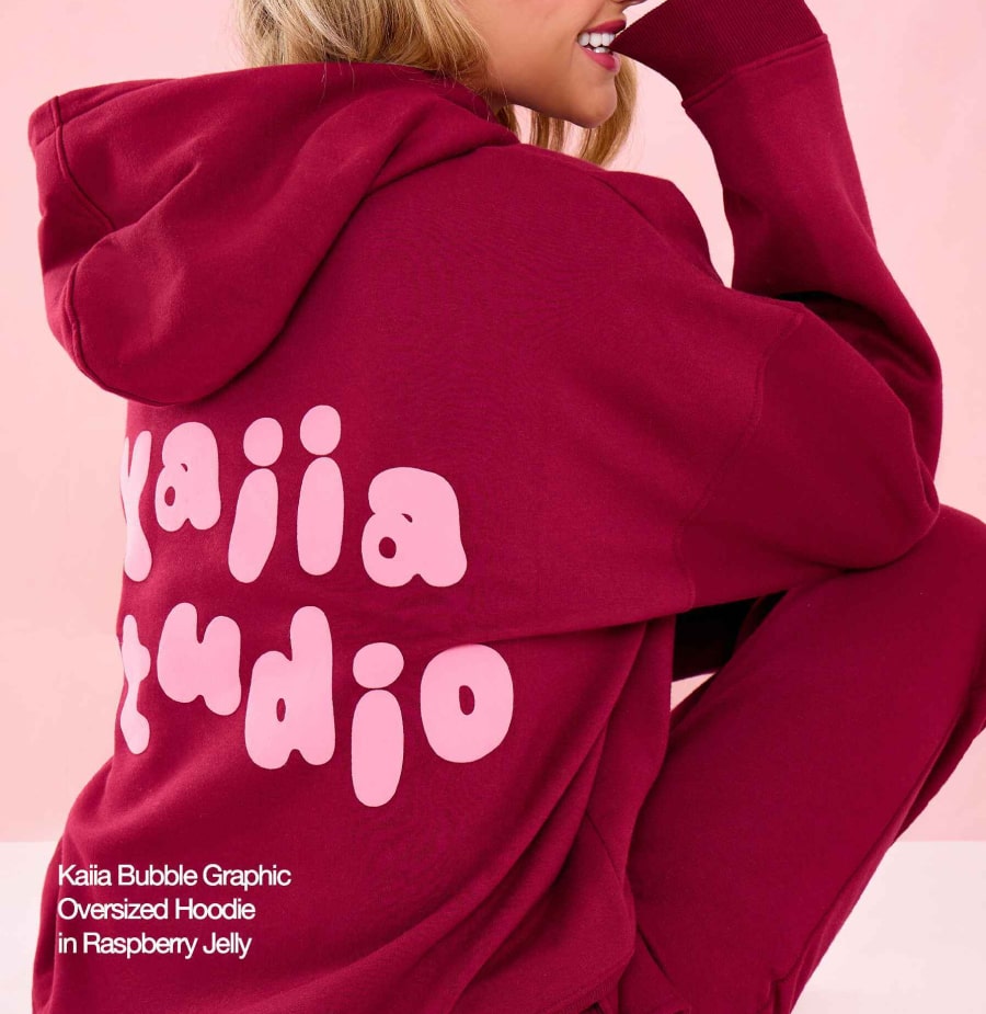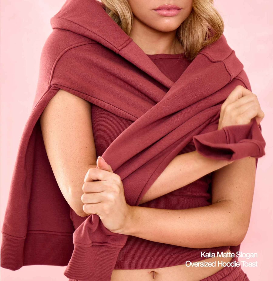 Kaiia Slogan Oversized Hoodie Warm Berry