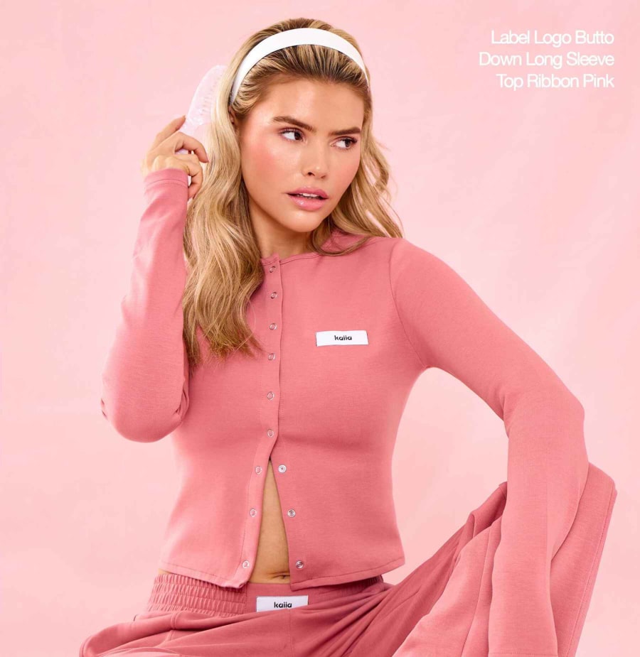 Kaiia Matte Slogan Mid Rise Wide Leg Joggers Rosey Blush