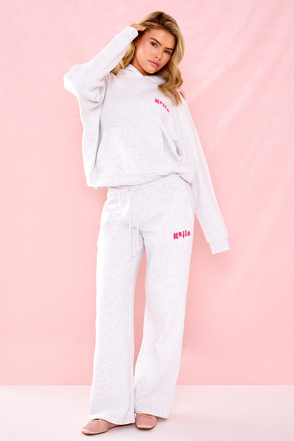 Kaiia Bubble Graphic Wide Leg Joggers Light Grey Marl & Pink