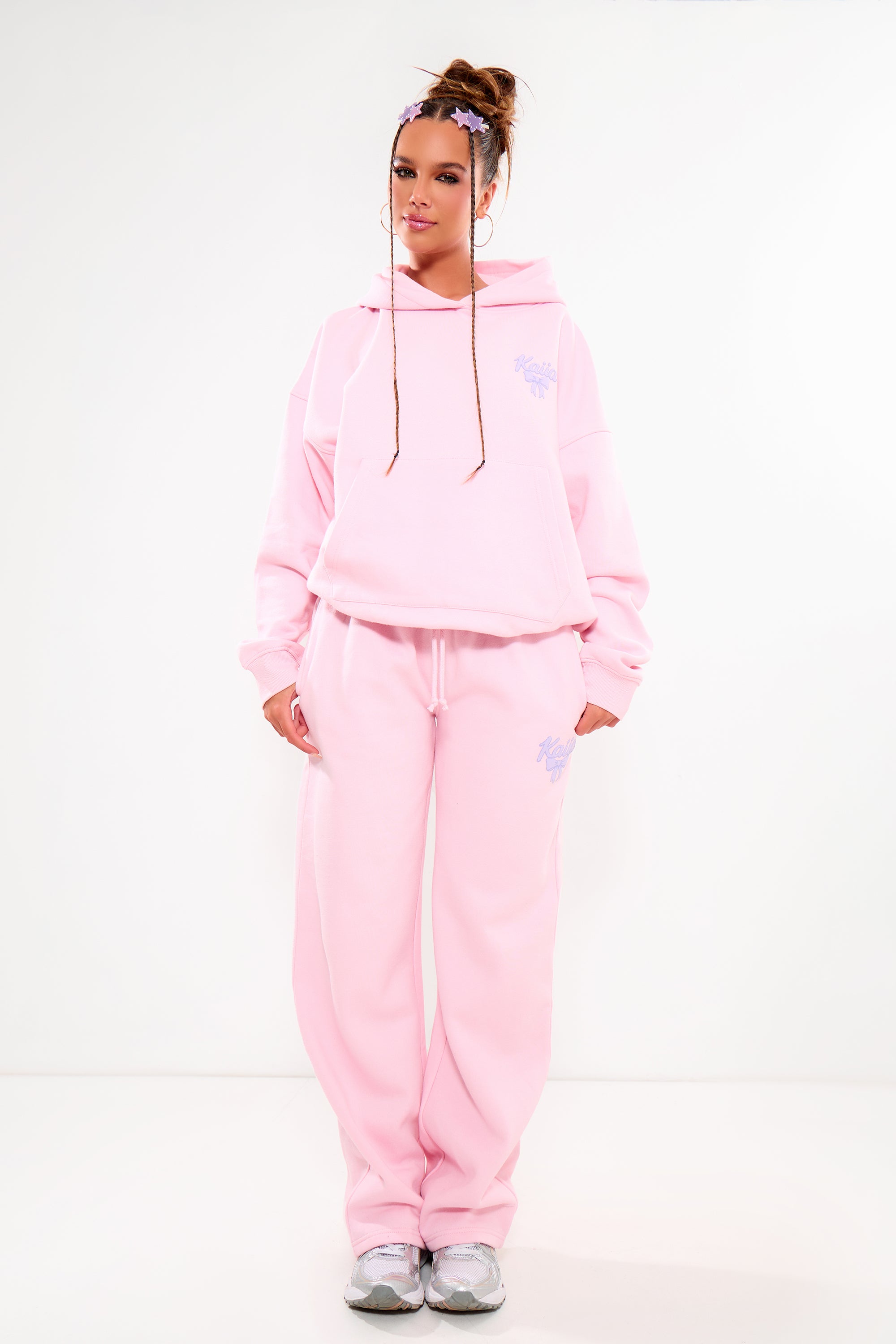Kaiia Bow Graphic Oversized Hoodie Pink & Lilac