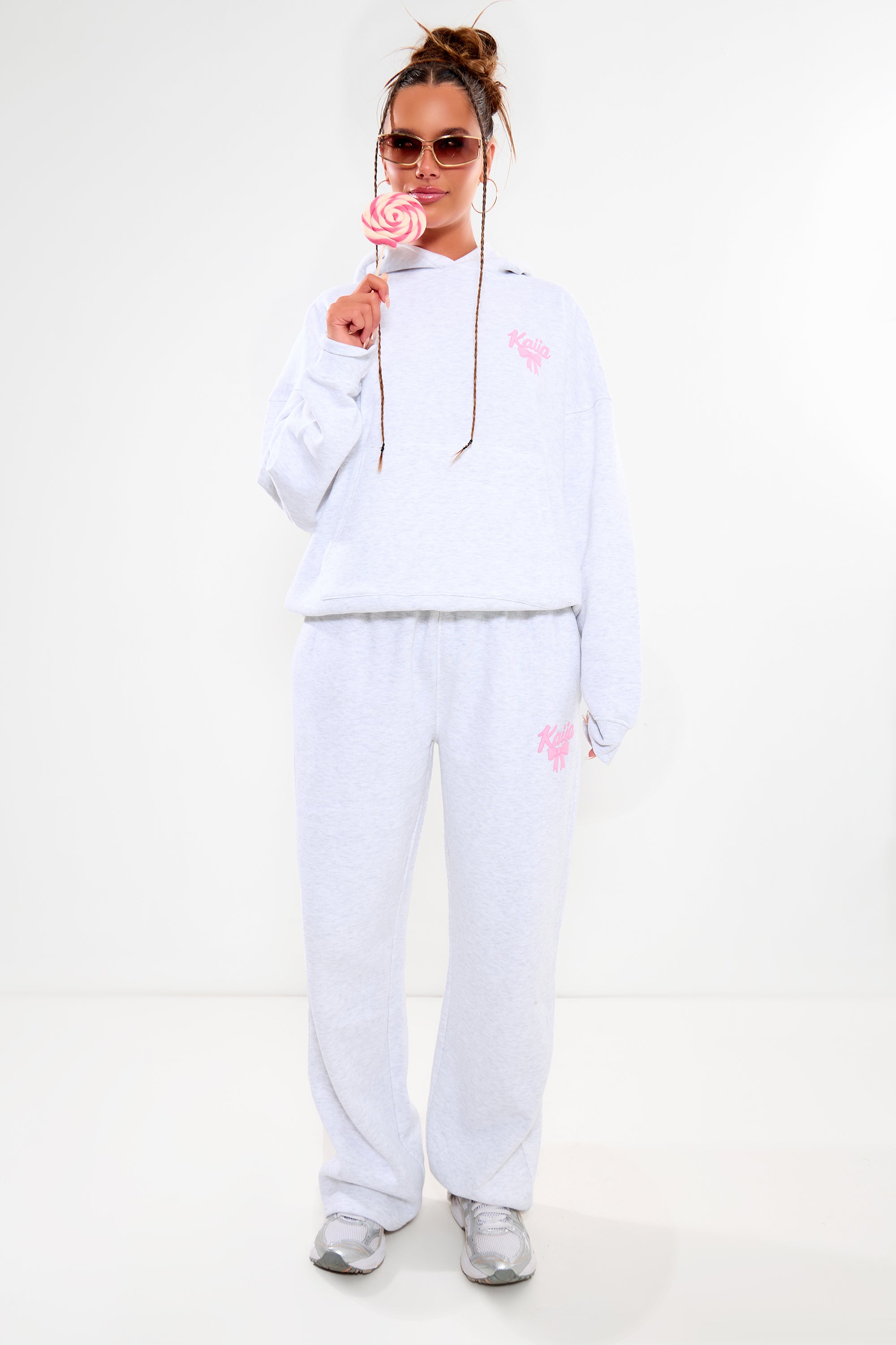 Kaiia Bow Graphic Wide Leg Joggers Light Grey Marl & Pink