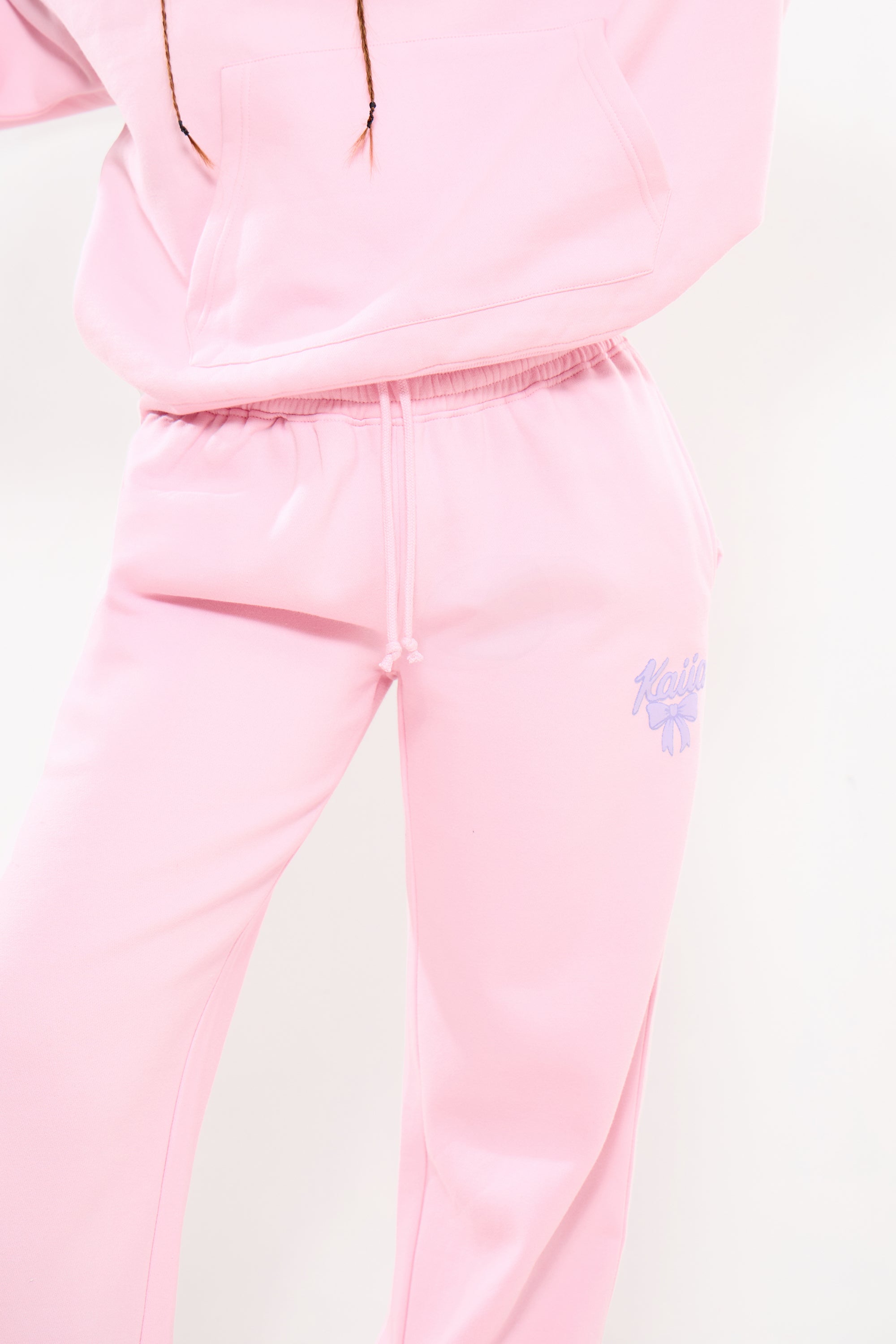 - Kaiia Bow Graphic Wide Leg Joggers Pink & Lilac