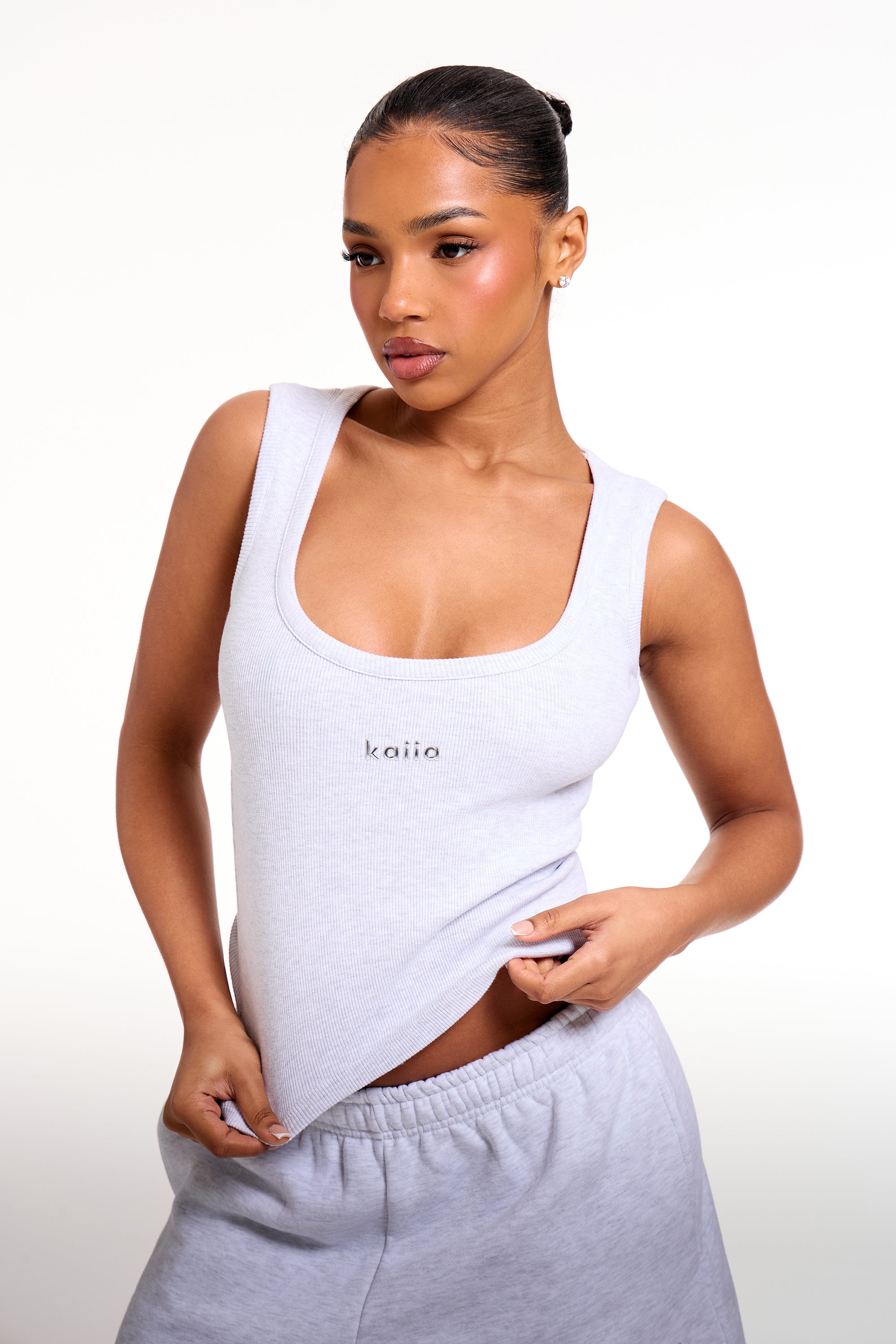 - Kaiia Chrome Logo Ribbed Vest Top Grey Melange
