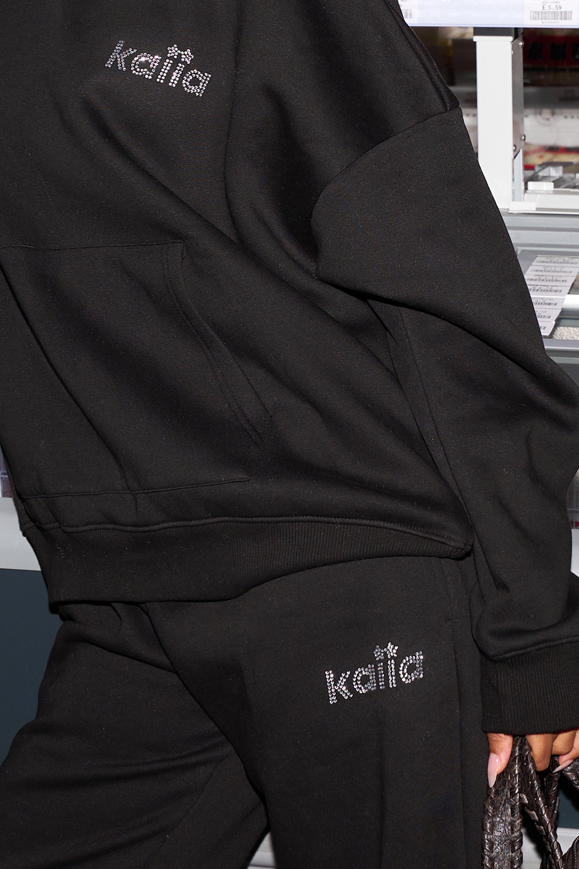 Kaiia Diamante Logo Wide Leg Joggers Black