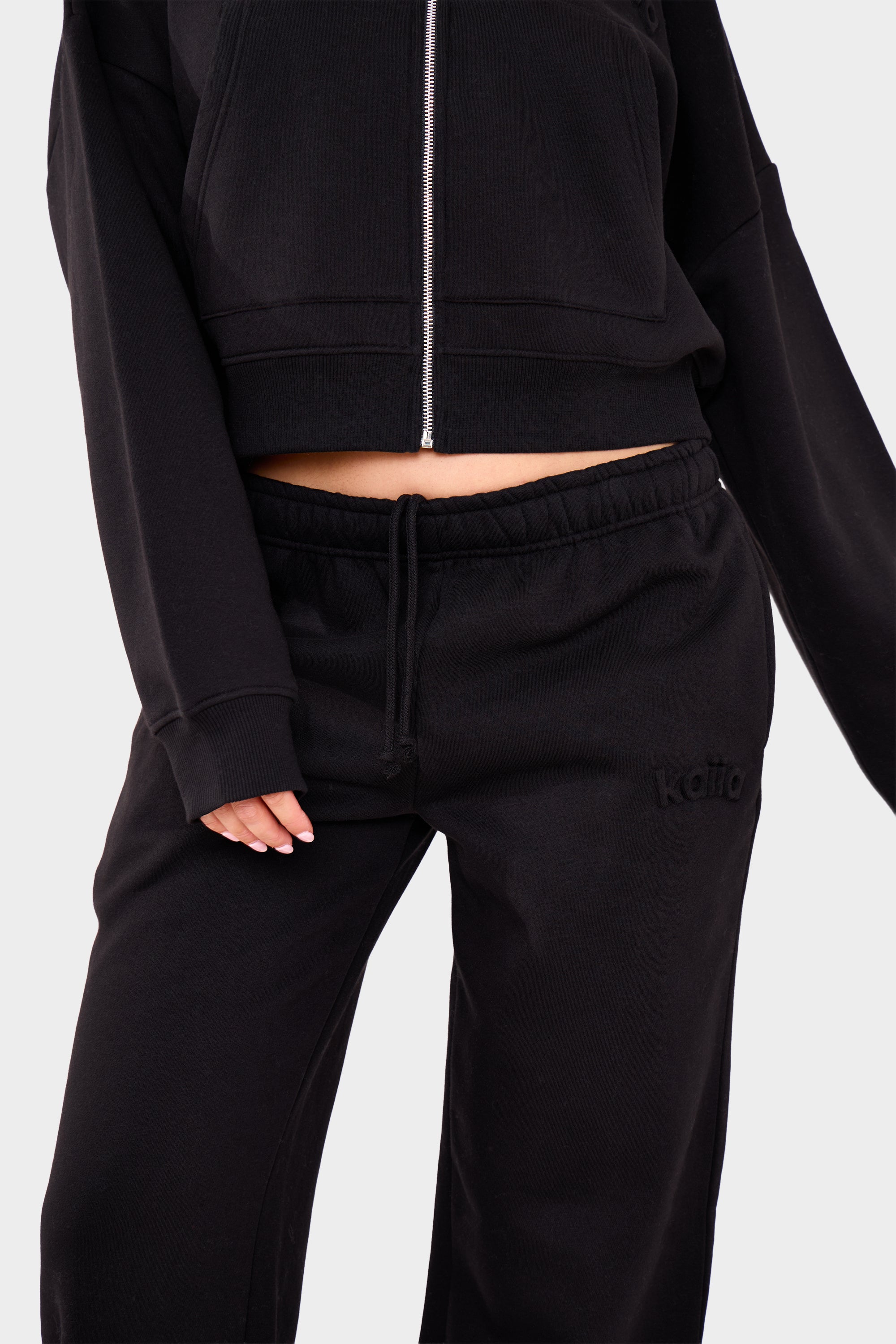 Kaiia Embossed Logo Wide Leg Joggers Black