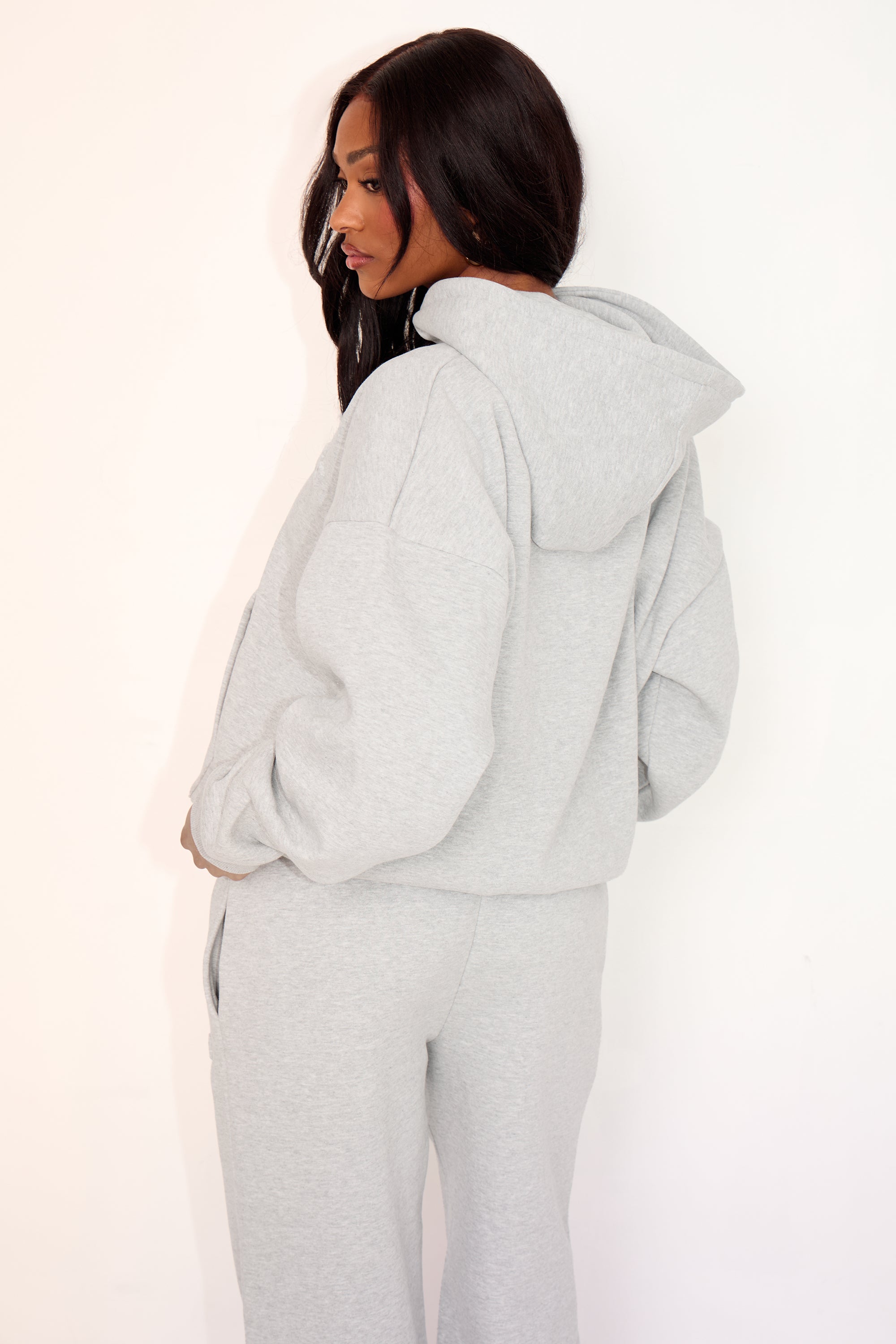 Elevate your everyday wardrobe with this oversized zip-through hoodie, featuring Kaiia's signature embossed logo. Crafted in a versatile mid grey marl, it's the perfect layering piece that effortlessly transitions from casual to cool. The relaxed fit offers maximum comfort and style, while the zip-through design provides easy styling flexibility. Whether you're heading out or settling in, this hoodie delivers that coveted relaxed-luxury aesthetic that works with everything in your closet.