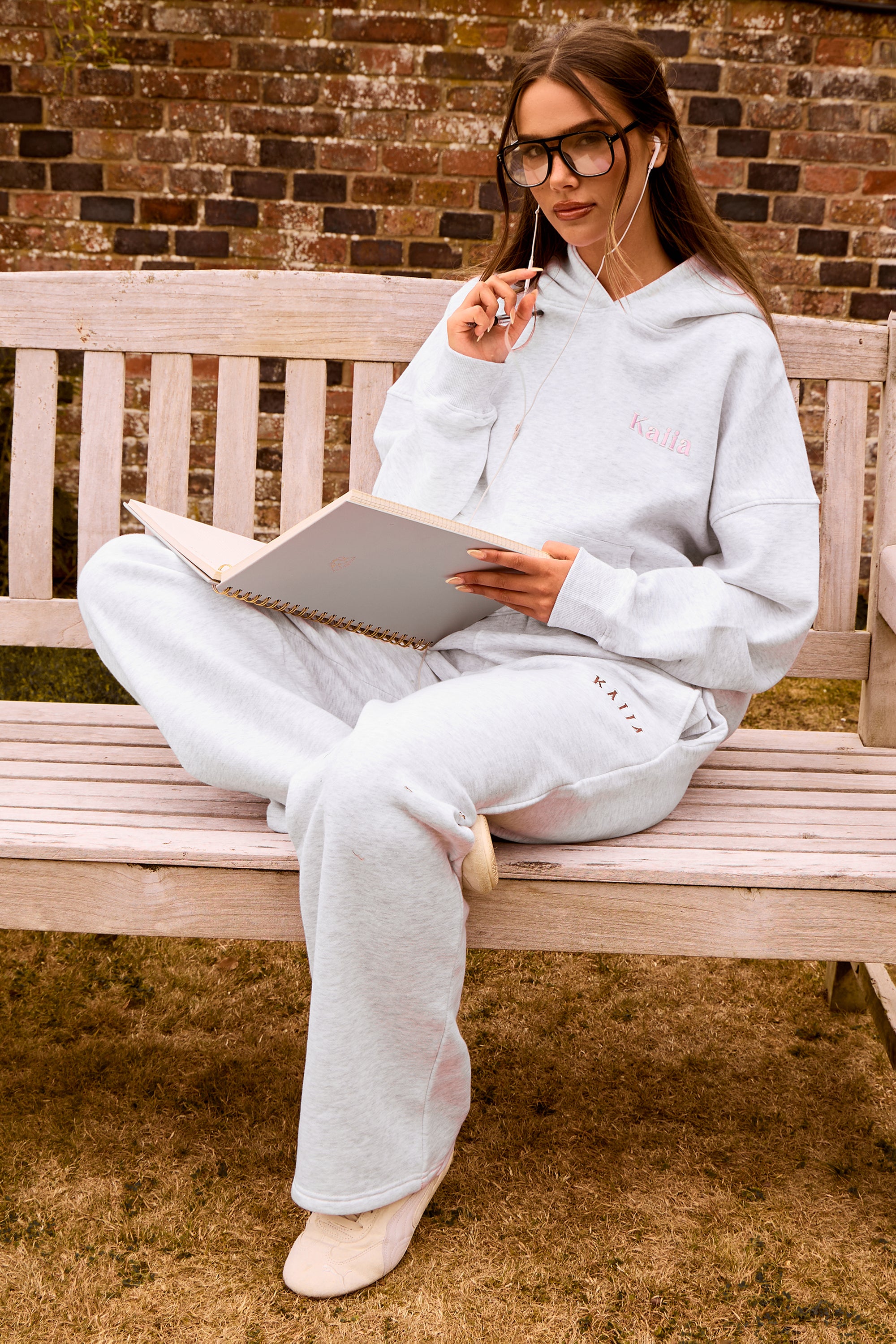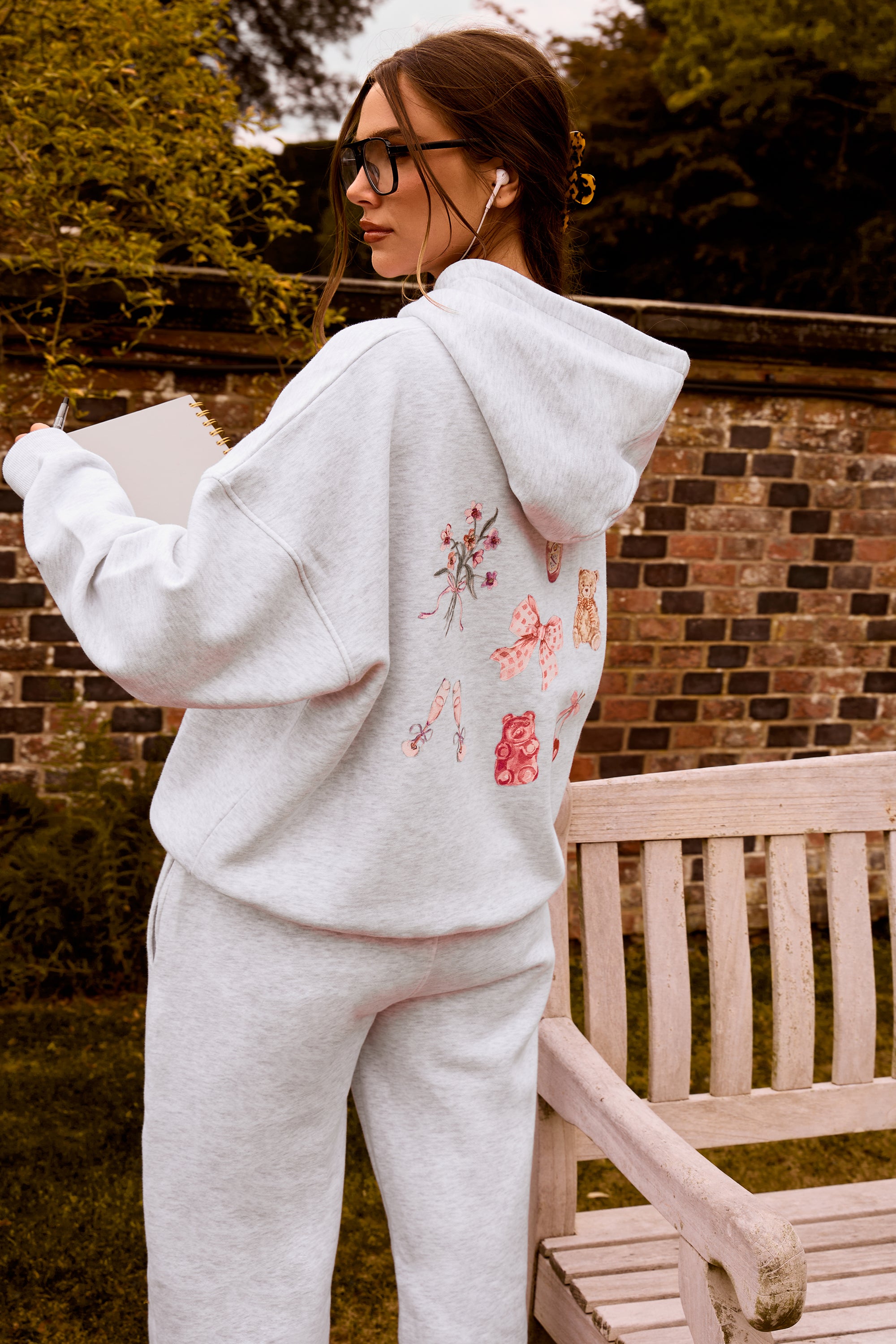 - Kaiia Girly Back Graphic Oversized Hoodie Light Grey Marl