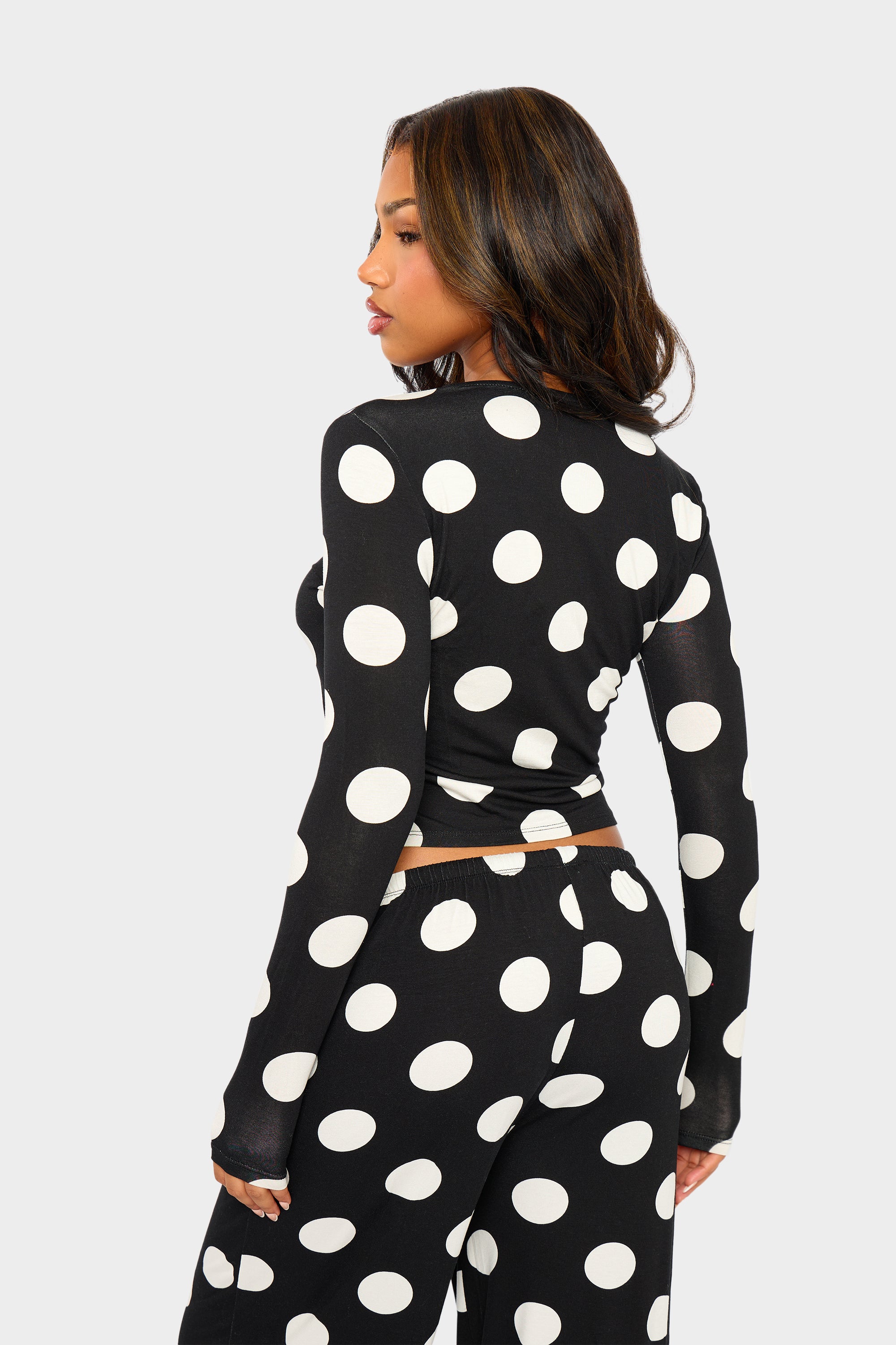 - Kaiia Large Polka Dot Button Up Long Sleeve Crop Top Black & Cream