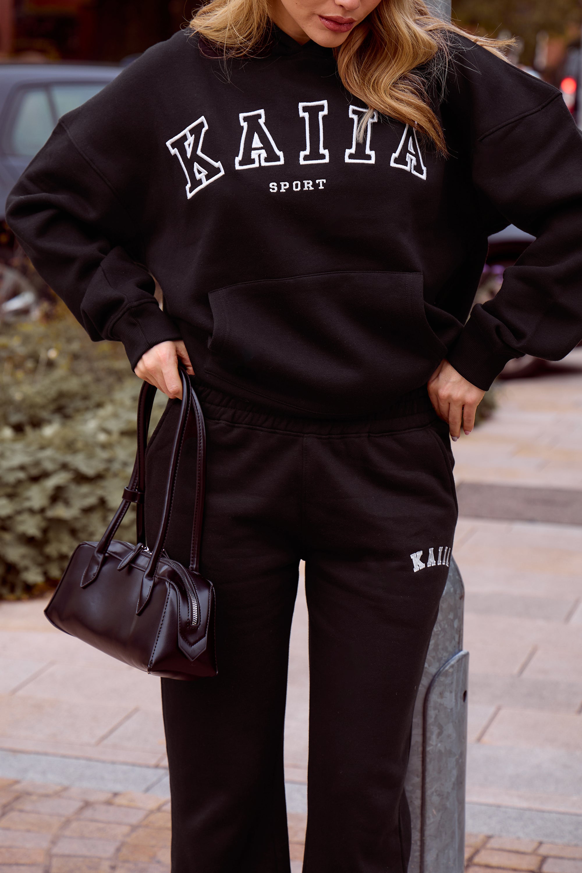 Kaiia Logo Wide Leg Sweat Pants in Black