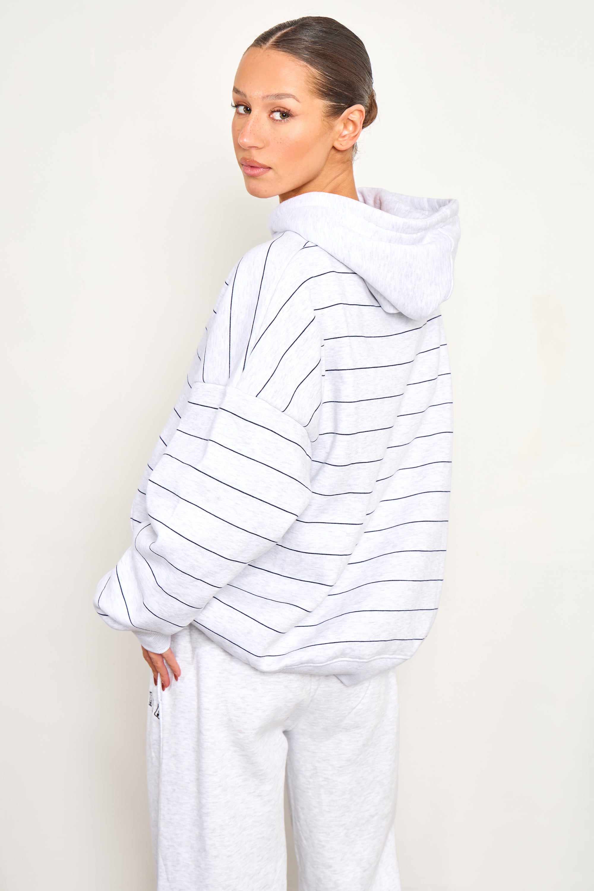 Kaiia Pinstripe Oversized Hoodie Bitter Light Grey Marl & Navy