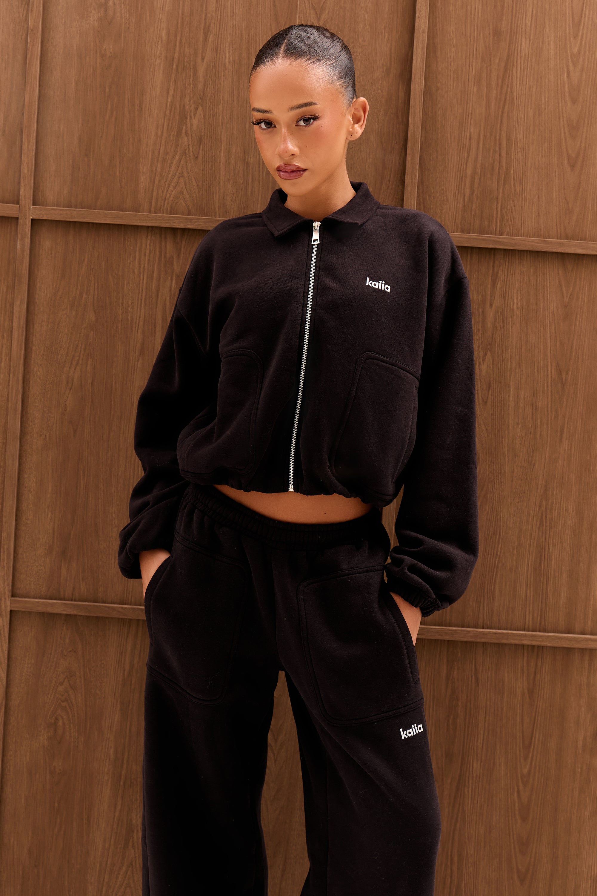 Kaiia Chrome Logo Pocket Detail Zip Through Sweatshirt Black