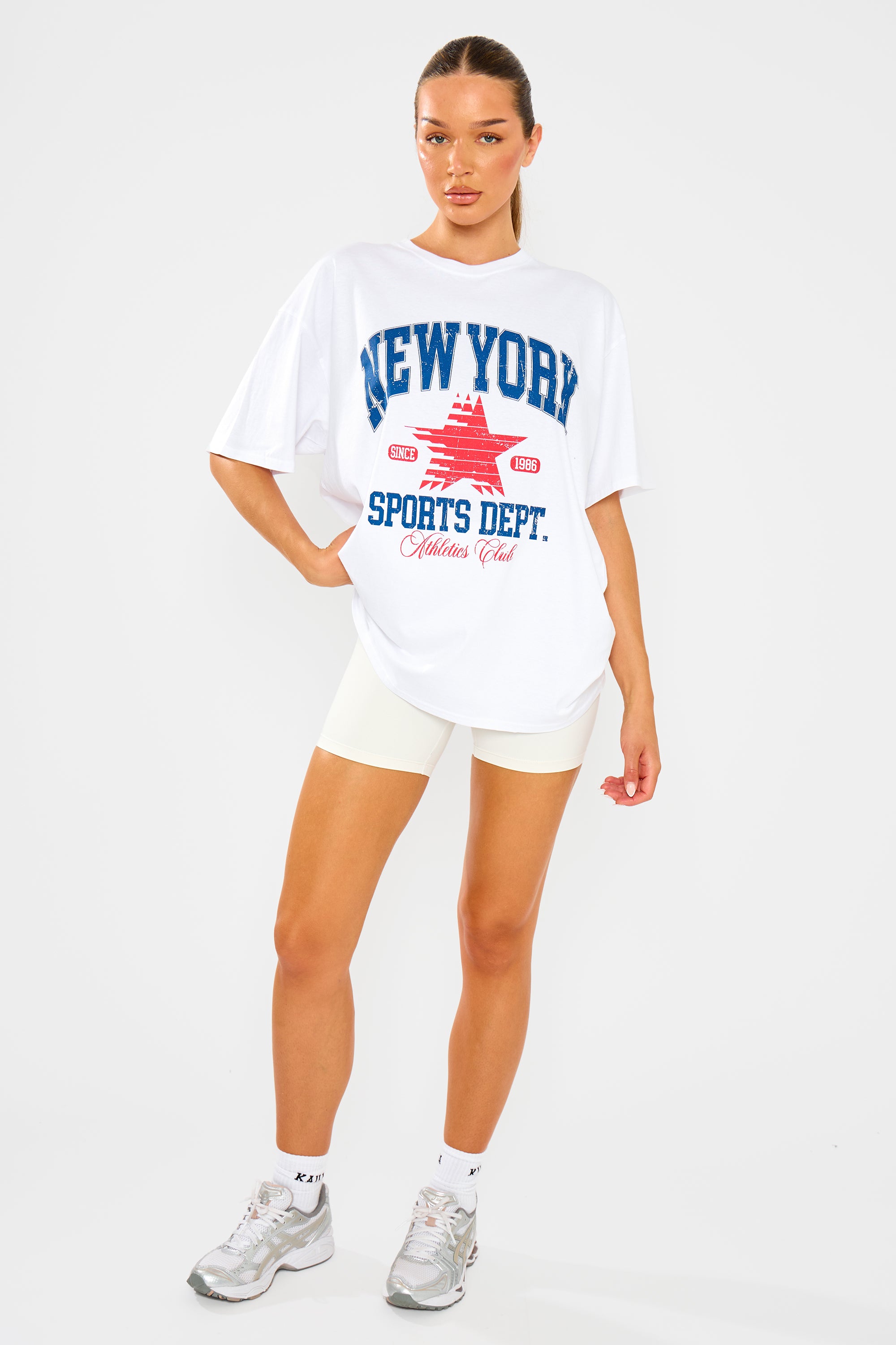 - Kaiia Retro Badge Star Print Oversized T-shirt White