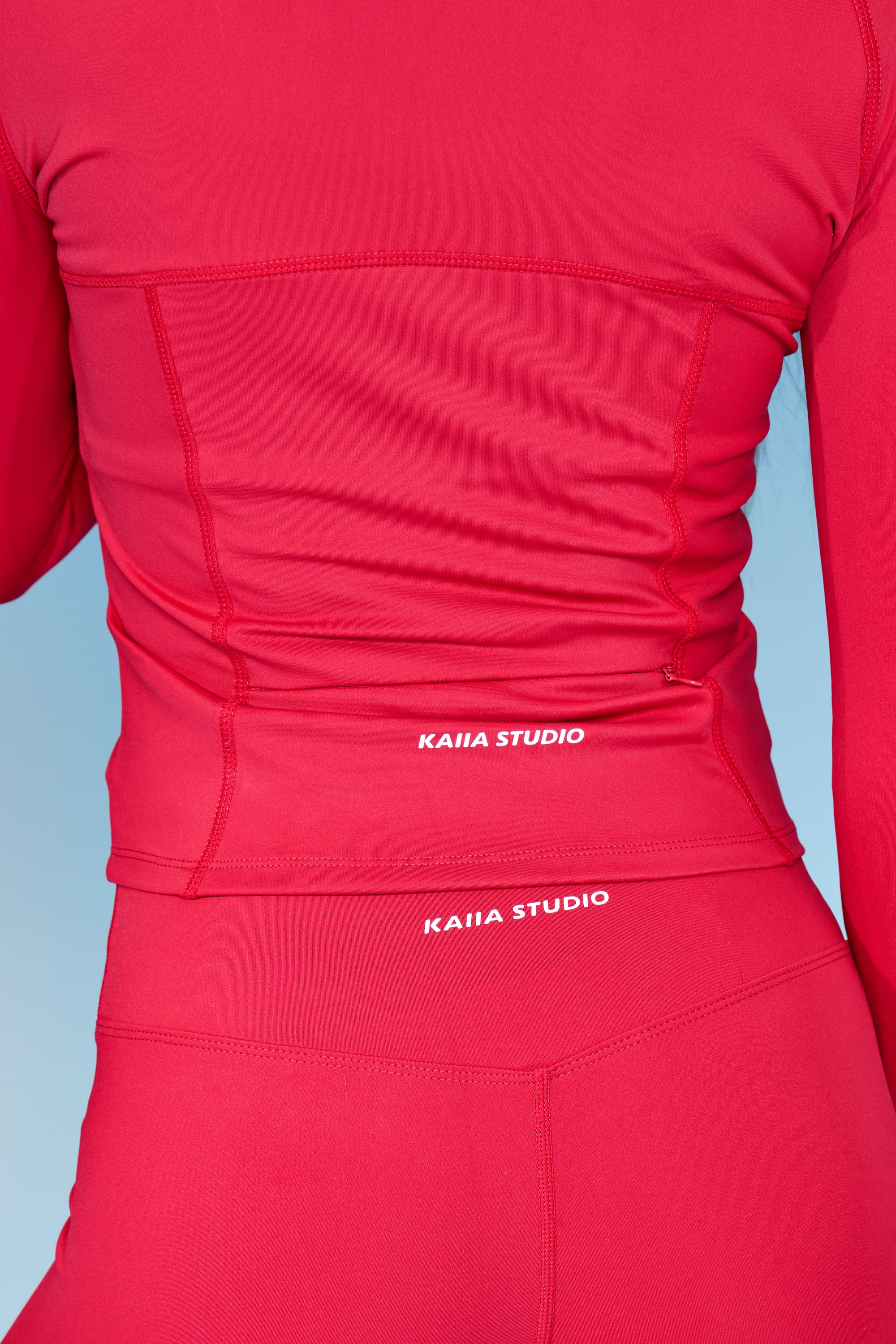 - Kaiia Sculpt Long Sleeve Zip Through Fitted Jacket Deep Red