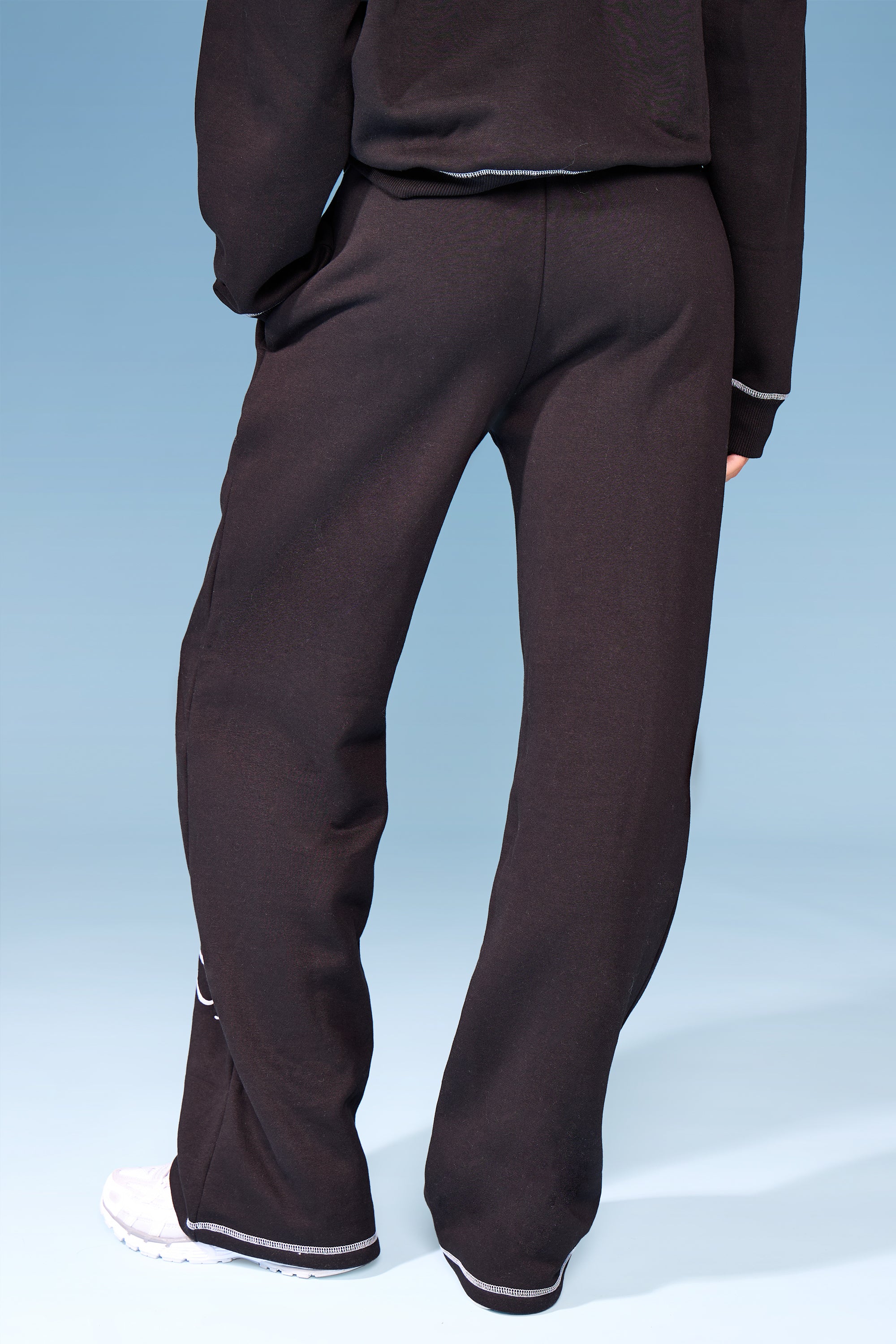 Kaiia Side Slogan Contrast Stitch Wide Leg Joggers Black & White
