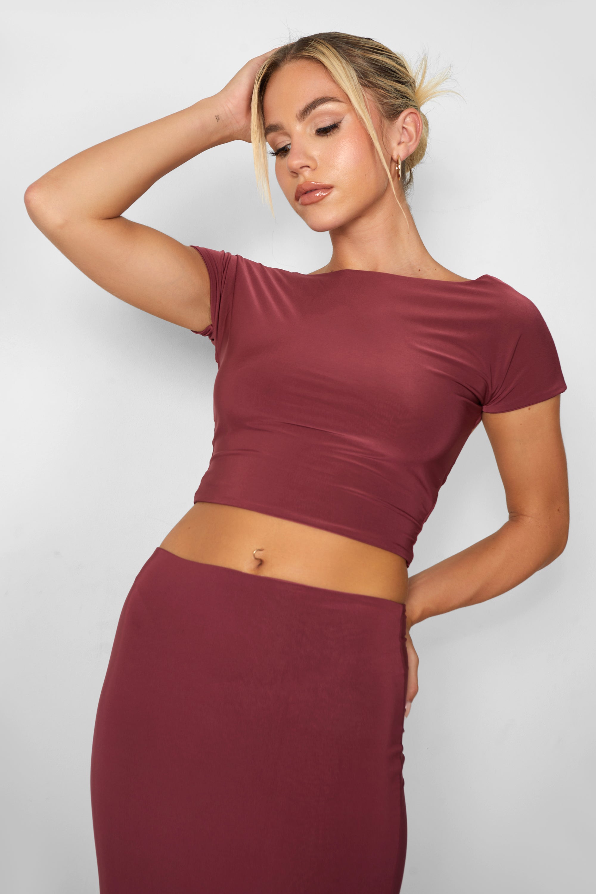 Kaiia Slinky Low Back Top Co-ord in Burgundy