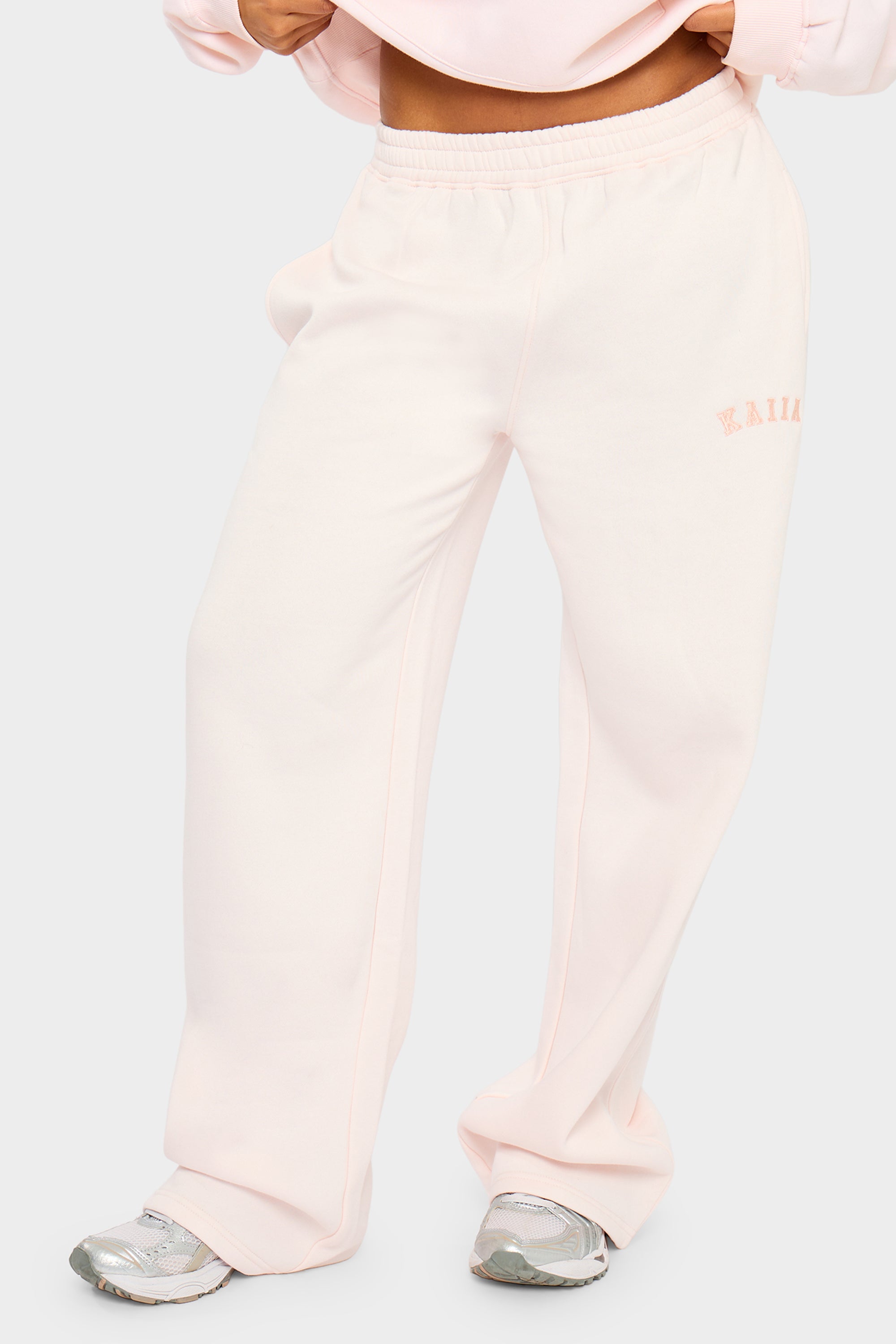 Elevate your casual wardrobe with these stunning wide-leg joggers in soft shell pink. Featuring the iconic Kaiia slogan, they blend comfort with contemporary style for effortless everyday wear. The relaxed silhouette flatters all body types while the premium fabric ensures breathability and durability. Perfect for lounging at home, running errands, or creating laid-back weekend looks. Pair with your favourite trainers or slides for an instantly polished aesthetic that doesn't compromise on comfort.