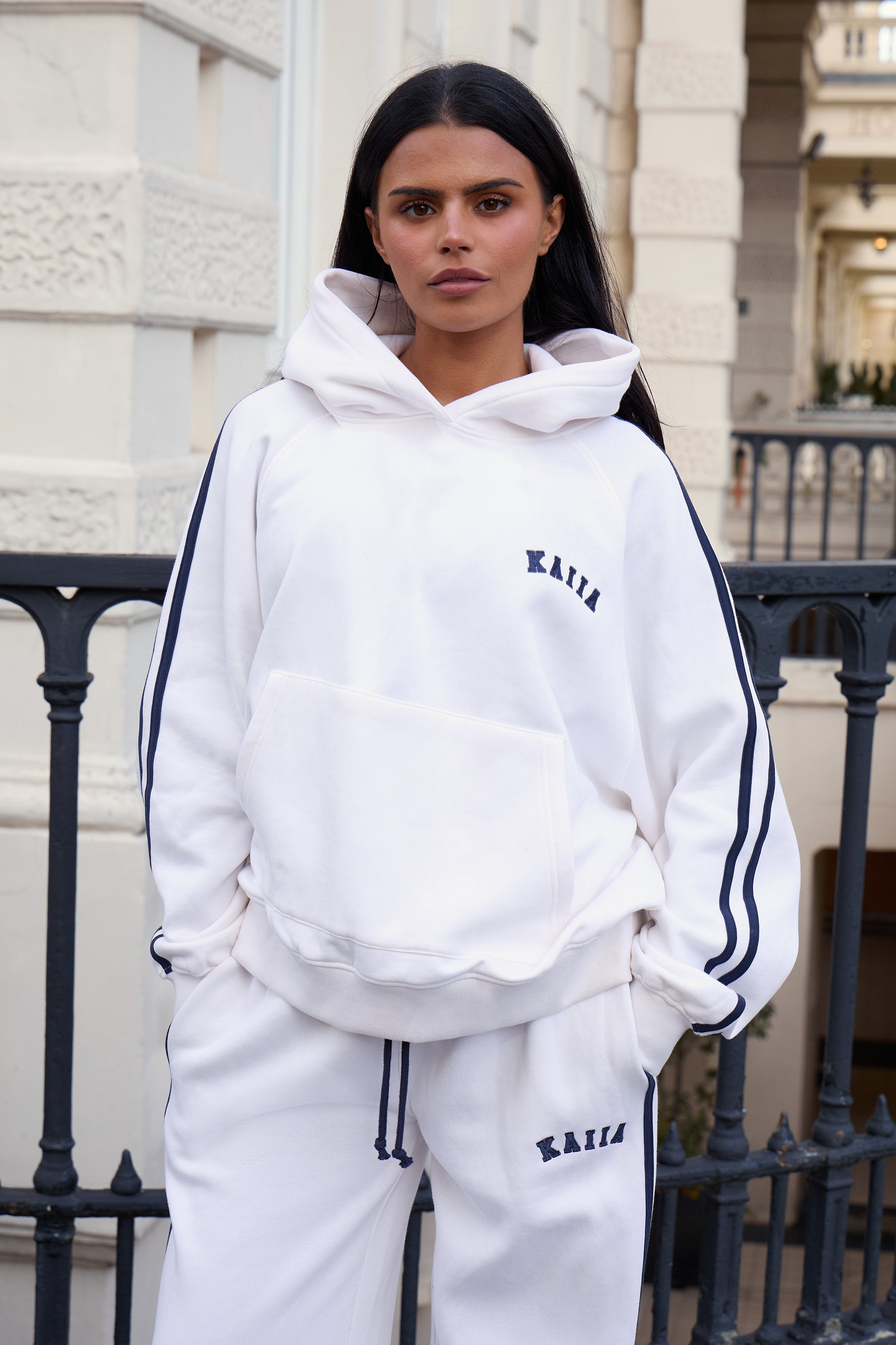 - Kaiia Sport Side Stripe Oversized Hoodie Cream & Navy