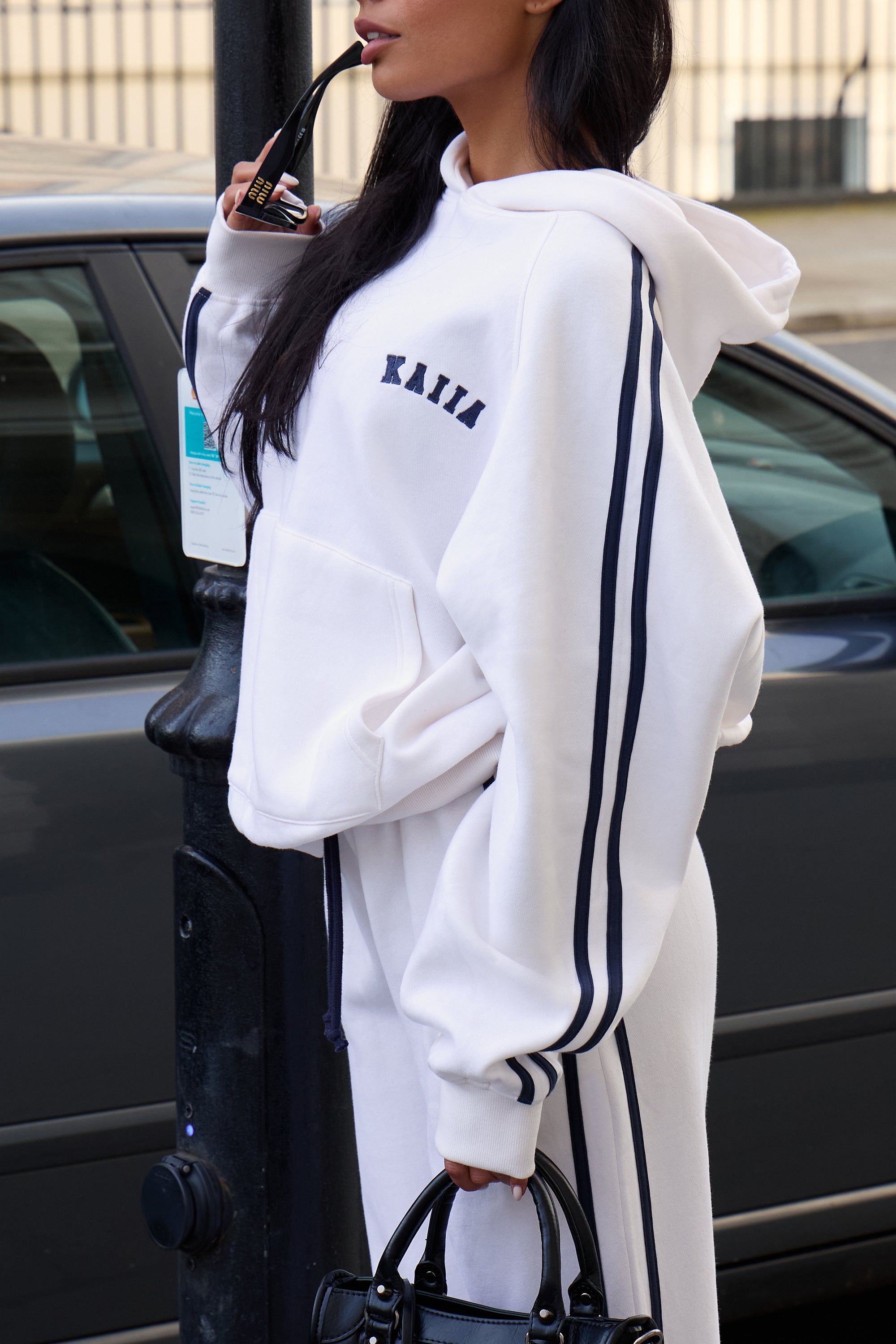 Make a statement with this sporty oversized hoodie, designed for those who refuse to compromise on comfort or style. The striking side stripe detail in cream and navy adds contemporary flair to a relaxed silhouette that works beautifully for layering or standalone wear. Built from quality fabric, it's your go-to piece for weekend adventures, gym sessions, or simply staying cosy. Embrace effortless athleisure with a hoodie that transitions seamlessly from day to night.