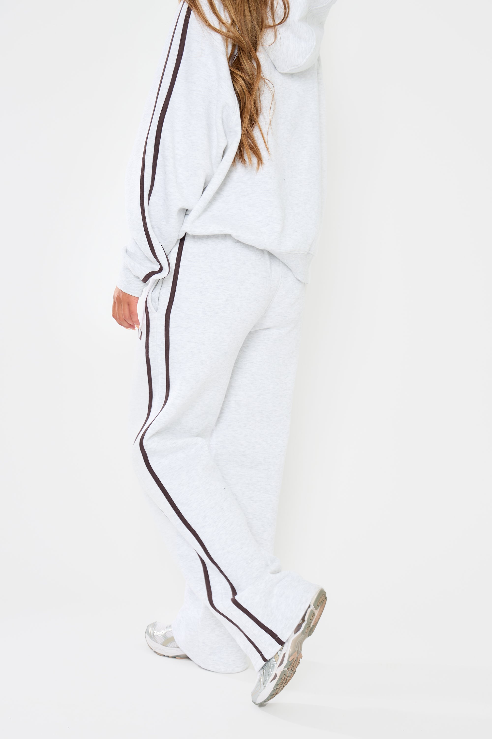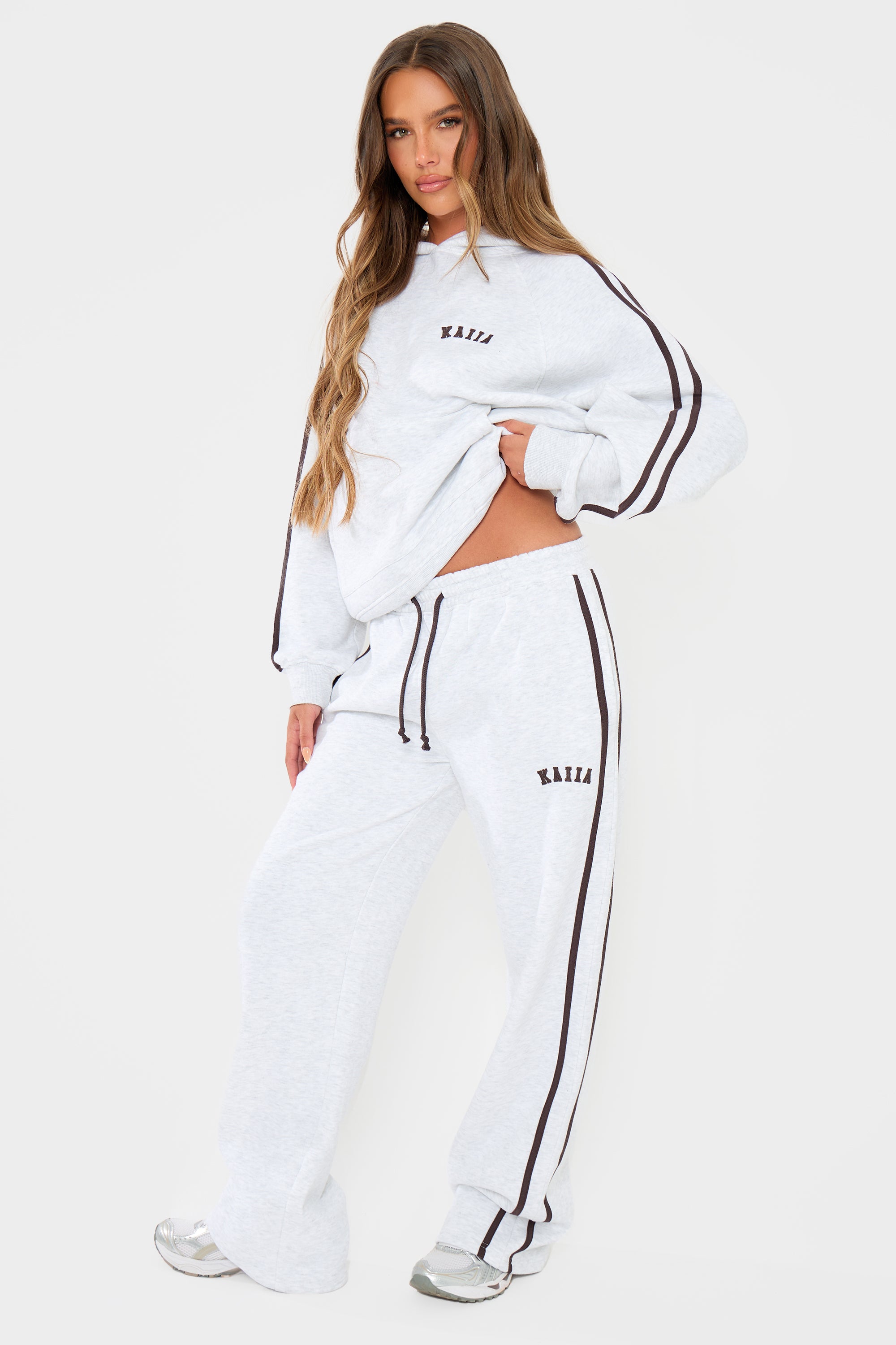 - Kaiia Logo Side Stripe Wide Leg Joggers Light Grey Marl & Brown