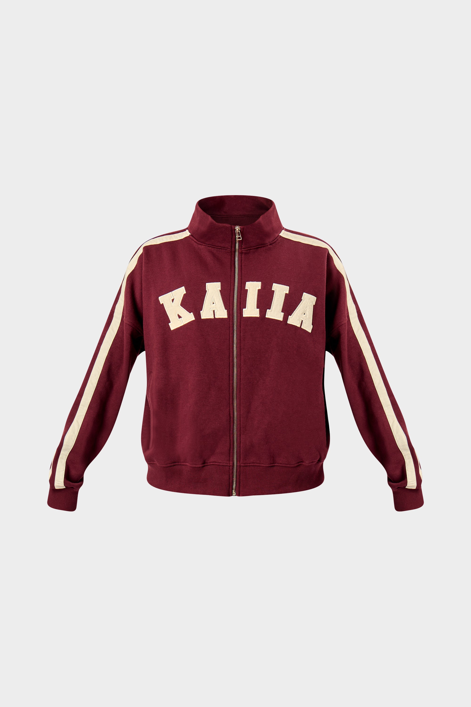 Kaiia Sport Stripe Funnel Neck Zip Through Sweatshirt Burgundy & Cream