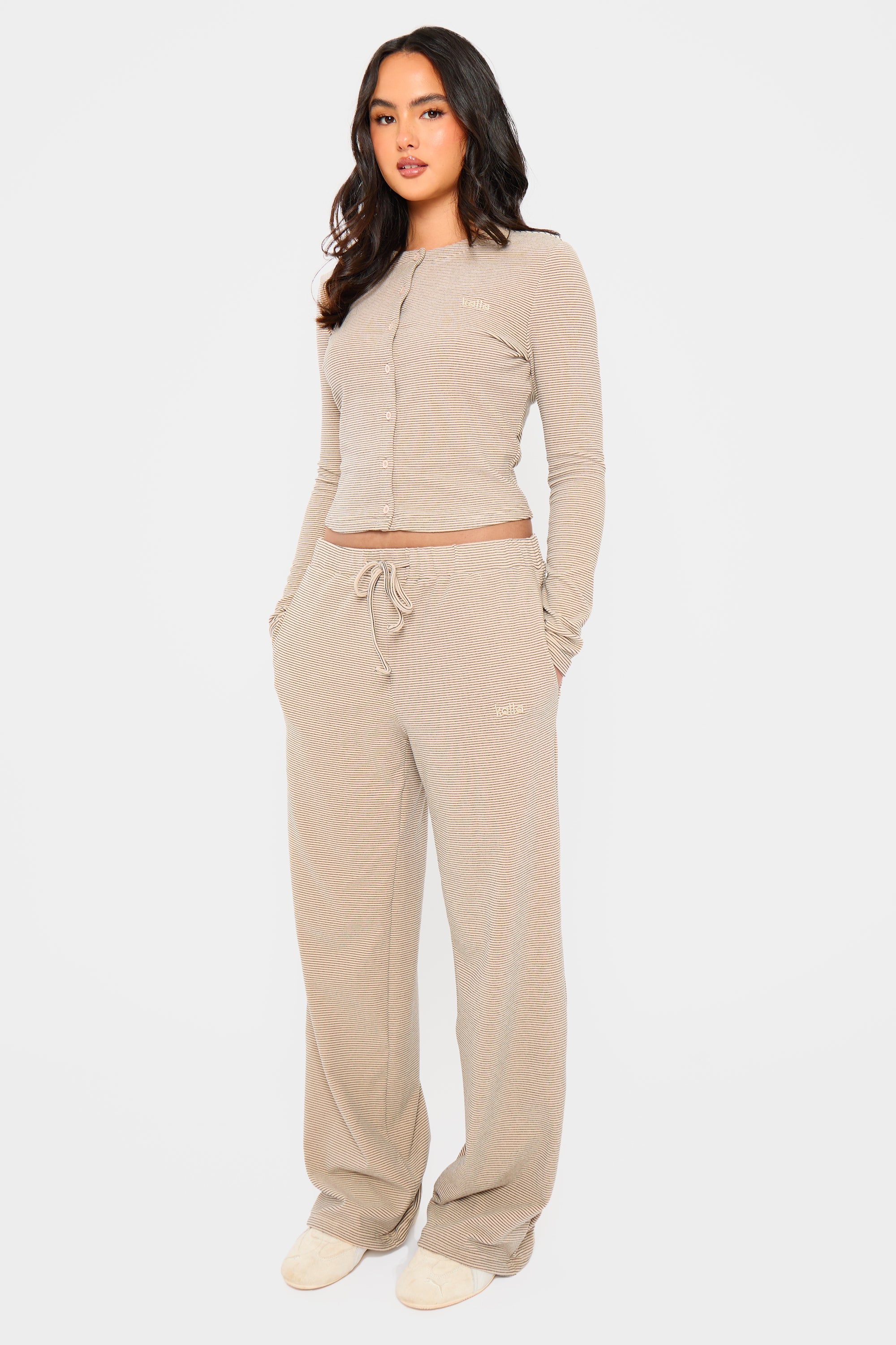 - Kaiia Striped Fleece Button Up Cardigan Cream & Black