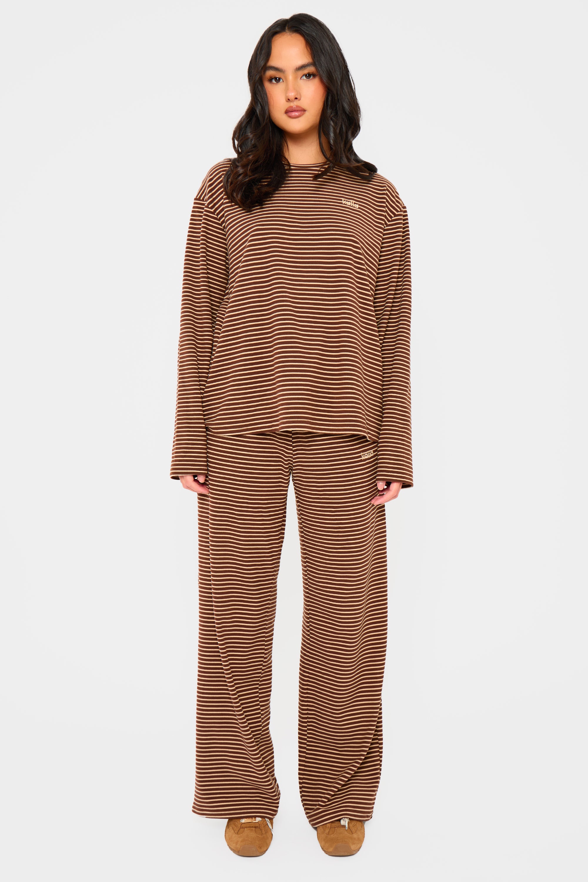 Kaiia Striped Fleece Oversized Long Sleeve Top Brown & Cream