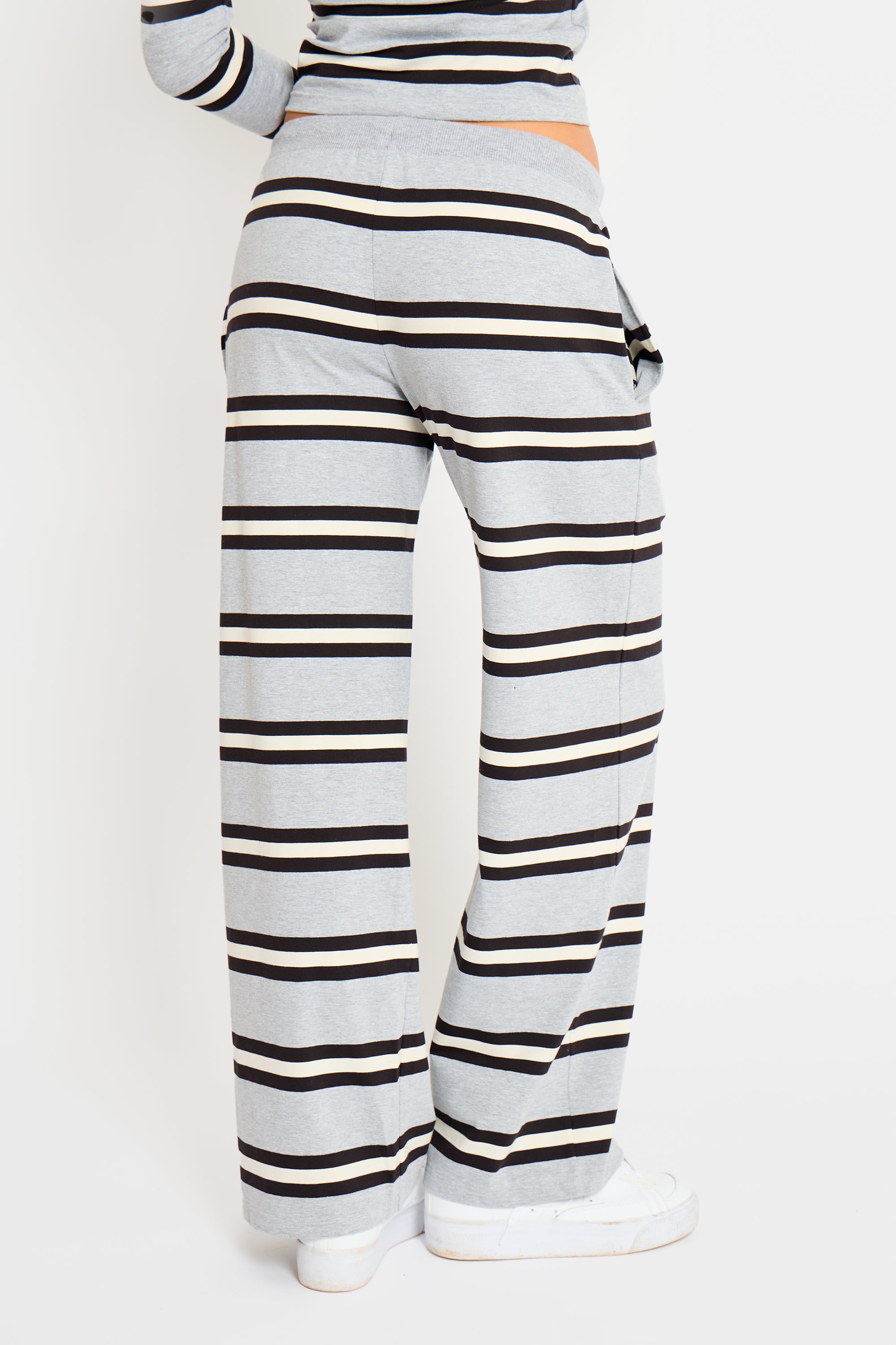 - Kaiia Striped Wide Leg Trousers Grey Marl, Cream & Black