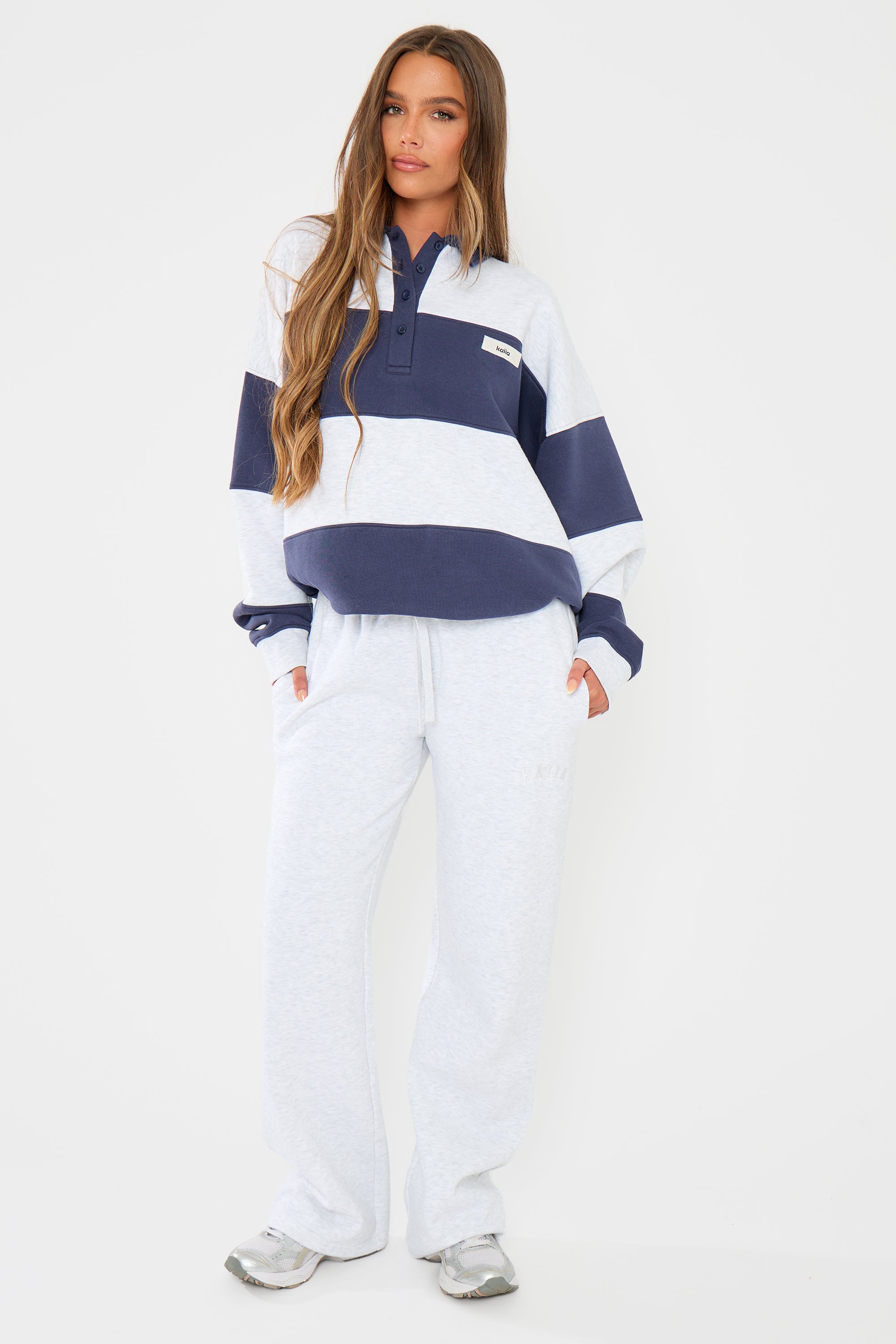 Kaiia Striped Oversized Rugby Sweatshirt Navy & Grey Marl