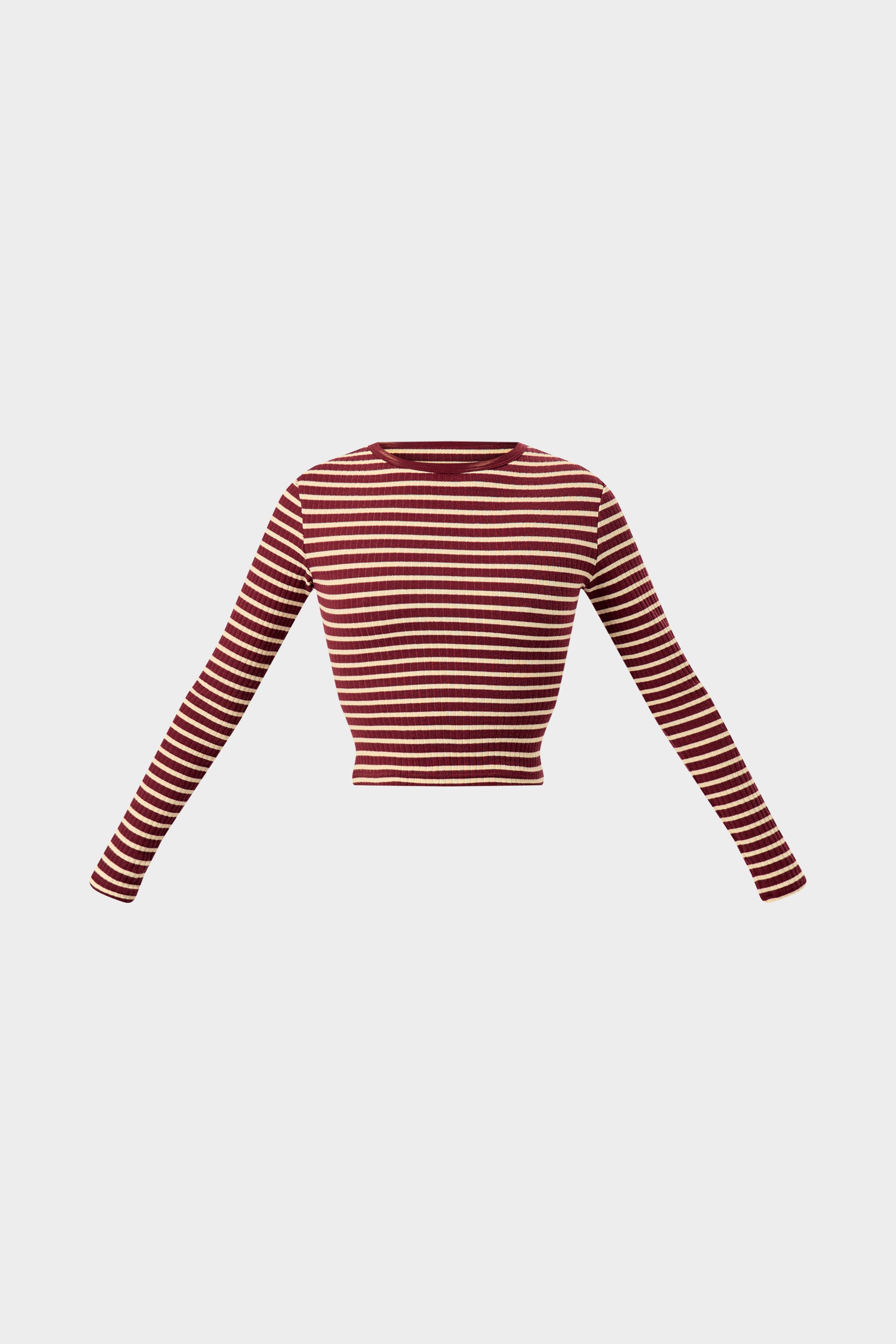 - Kaiia Striped Rib Fitted Long Sleeve Baby Tee Dark Cherry & Cream