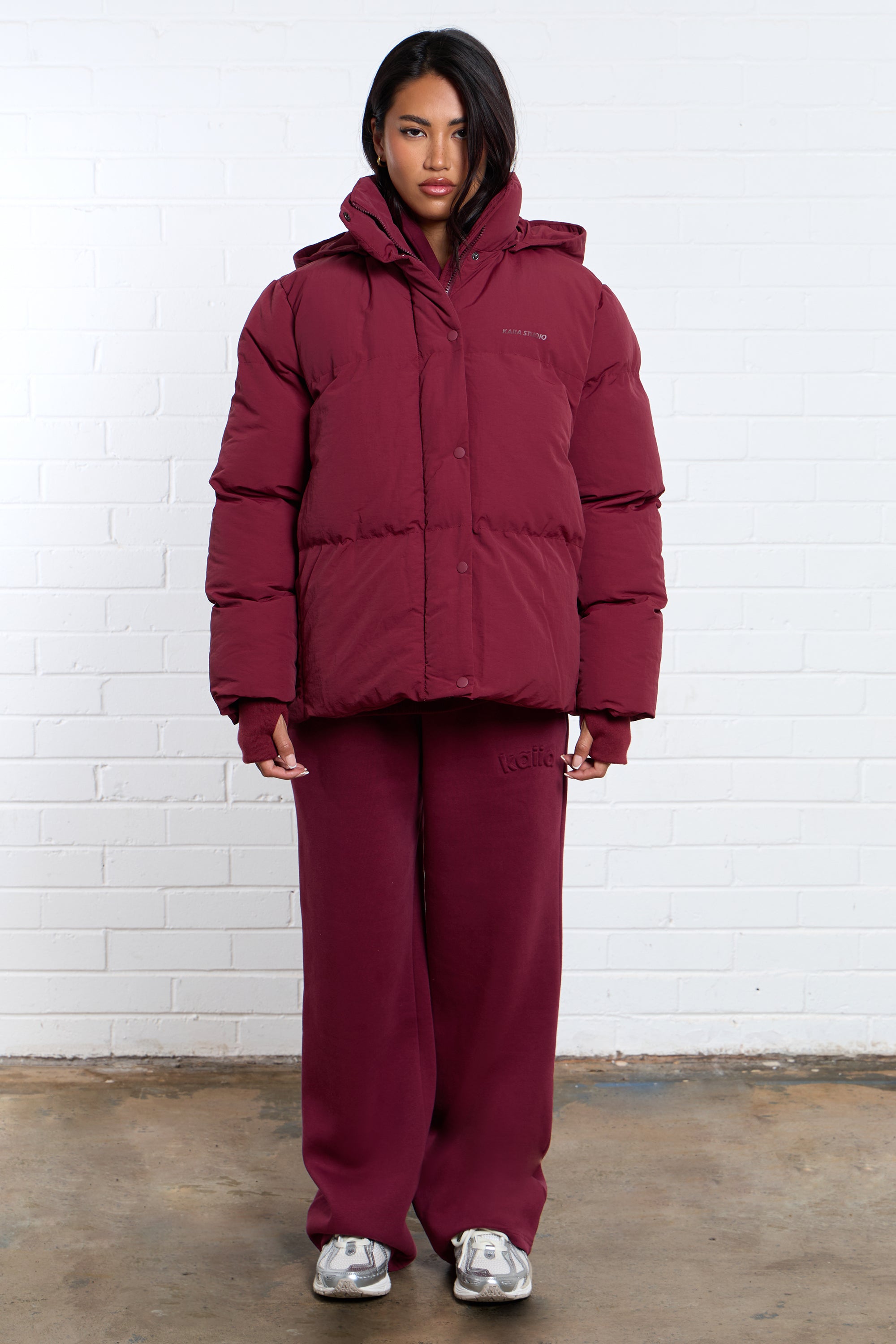 Kaiia Studio Logo Oversized Puffer Coat Burgundy