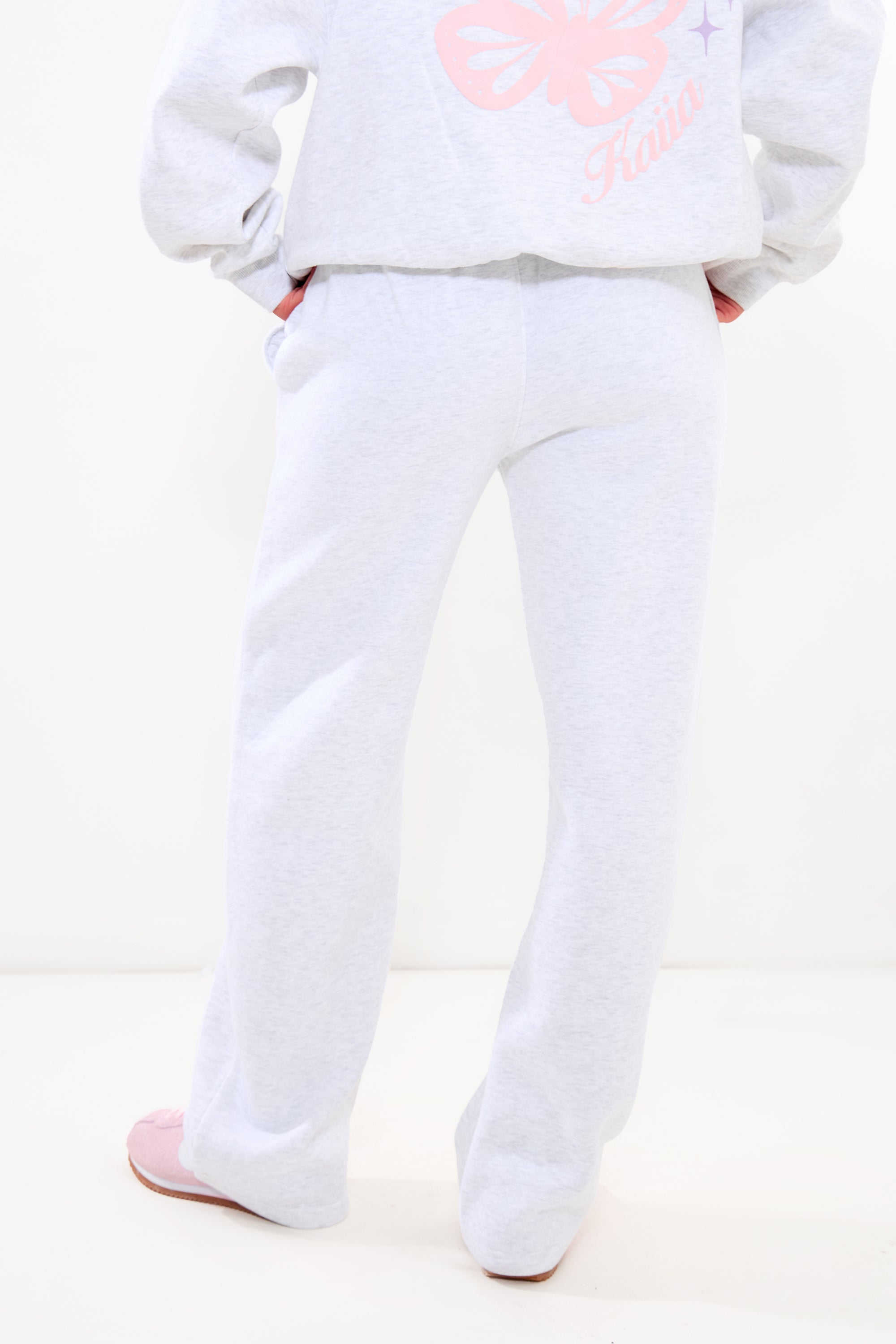 - Kaiia Wide Leg Joggers Light Grey Marl & Pink