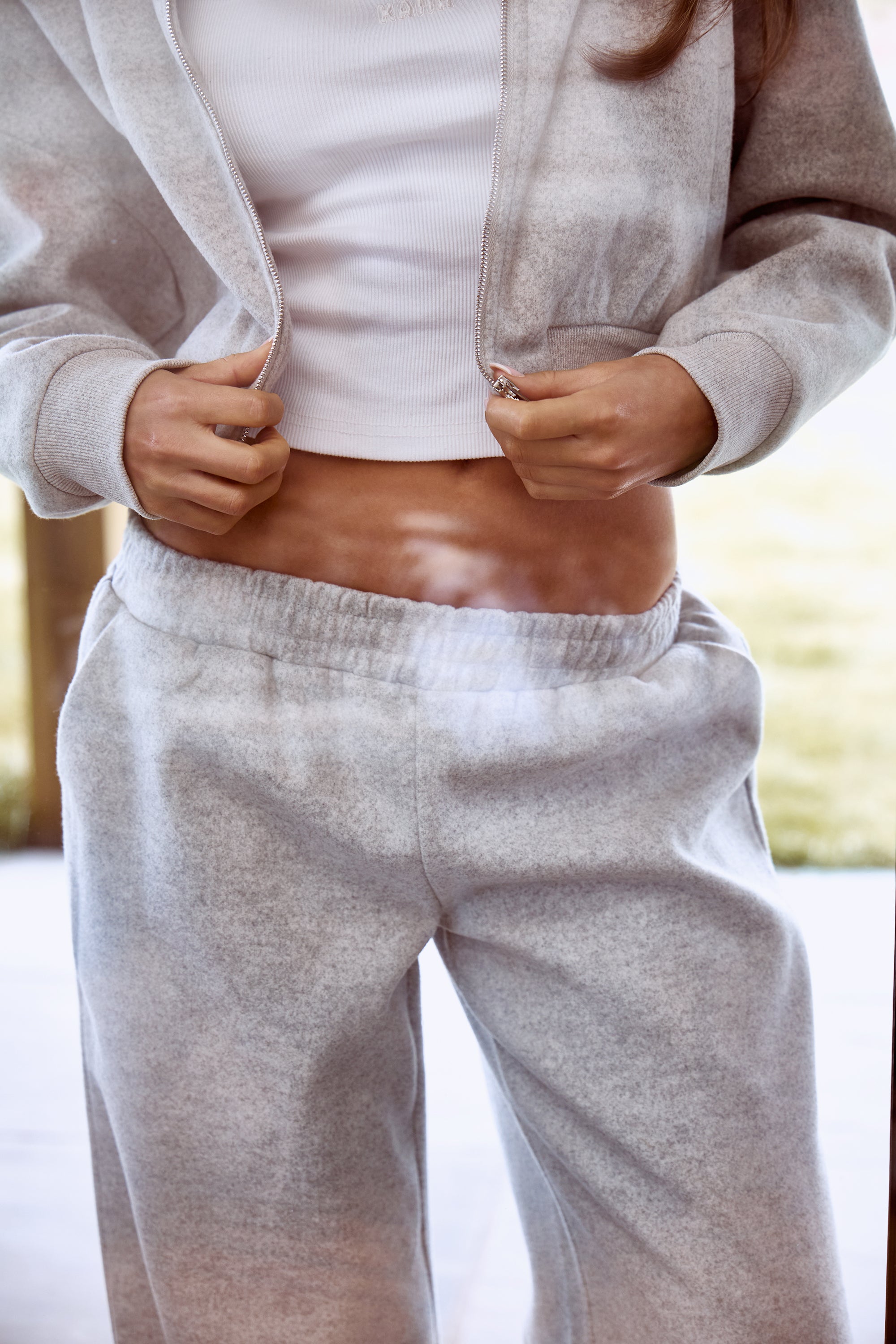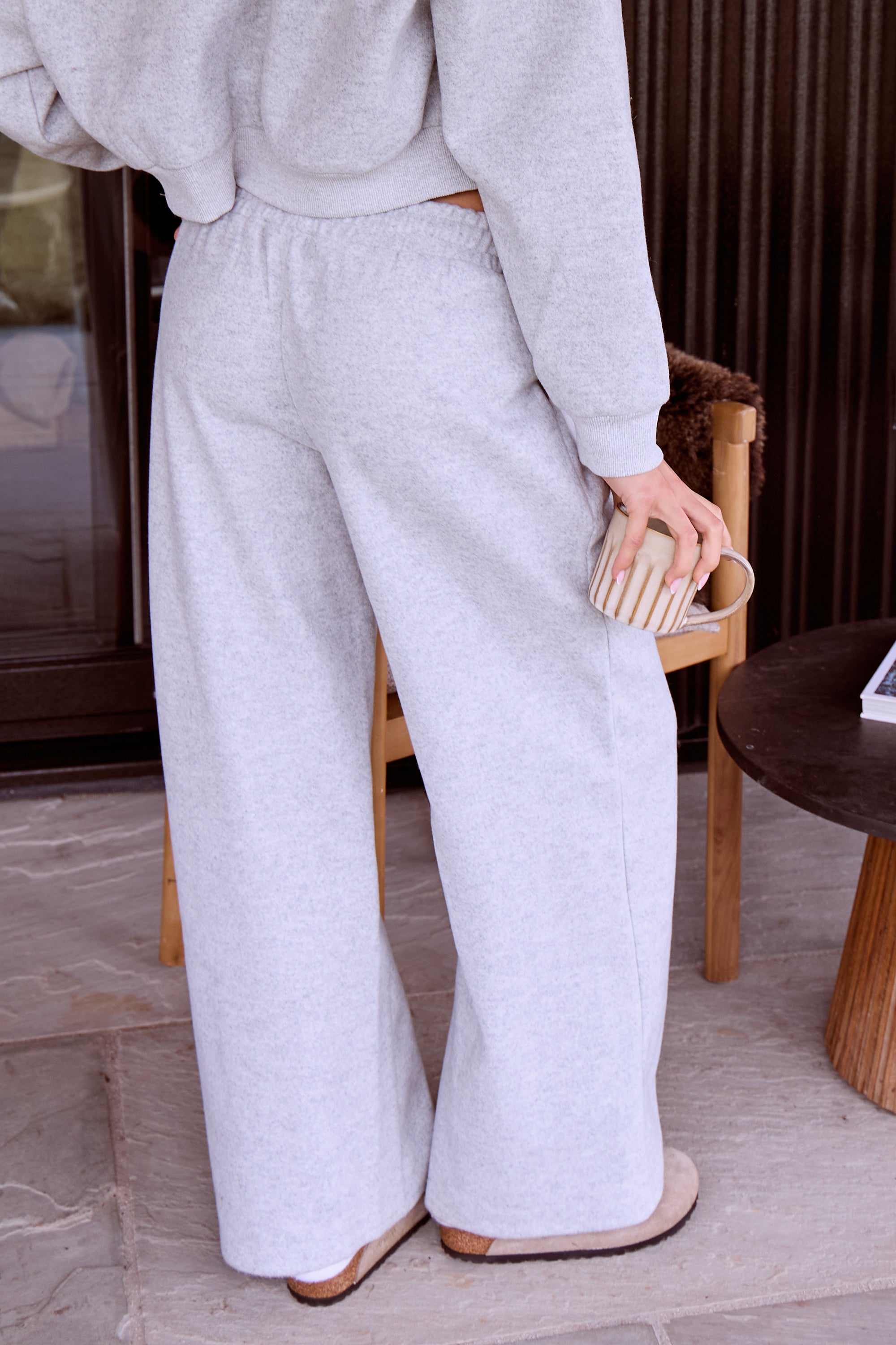 Kaiia Wool Effect Wide Leg Trousers Grey Marl