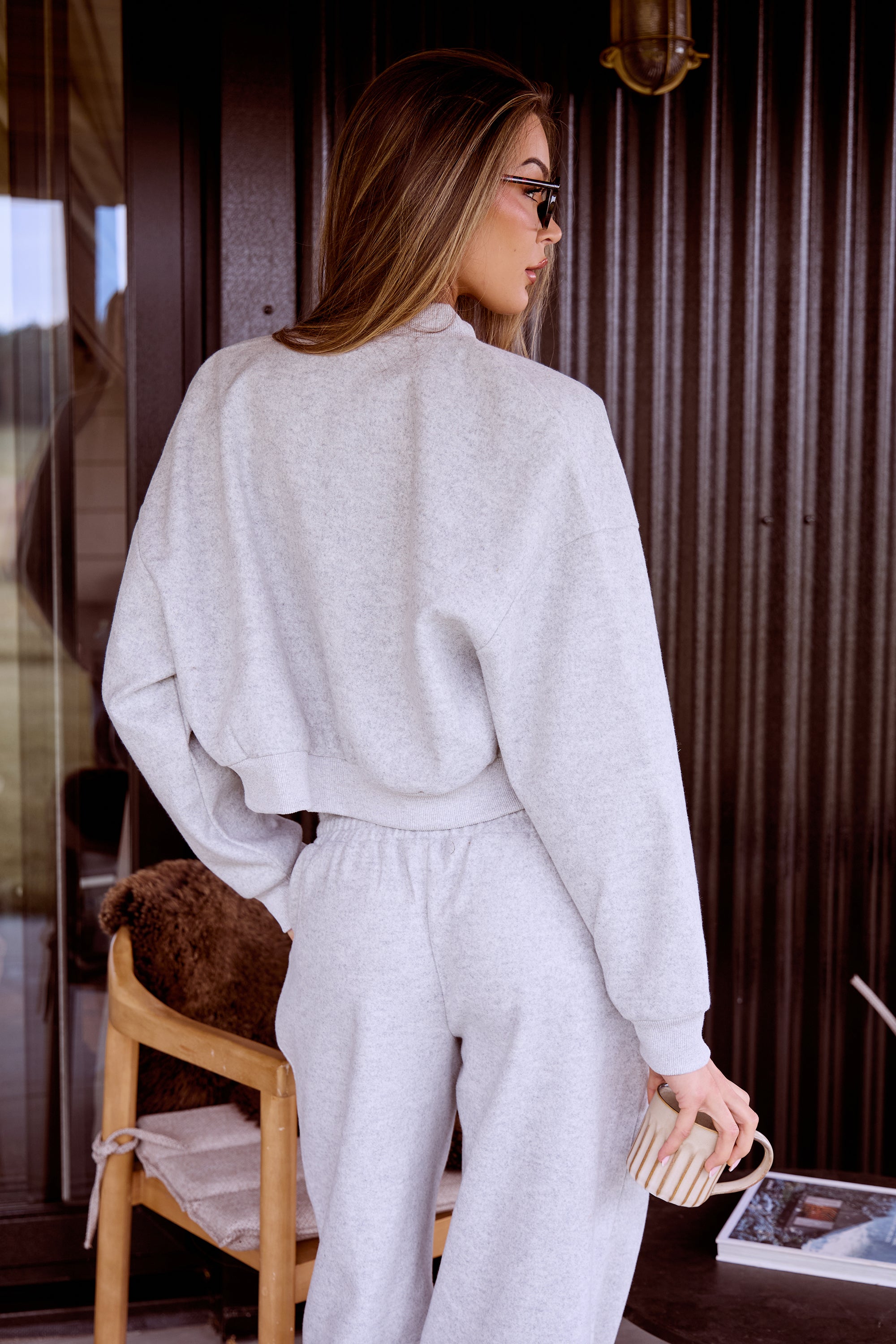 - Kaiia Wool Effect Zip Through Bomber Jacket Grey Marl