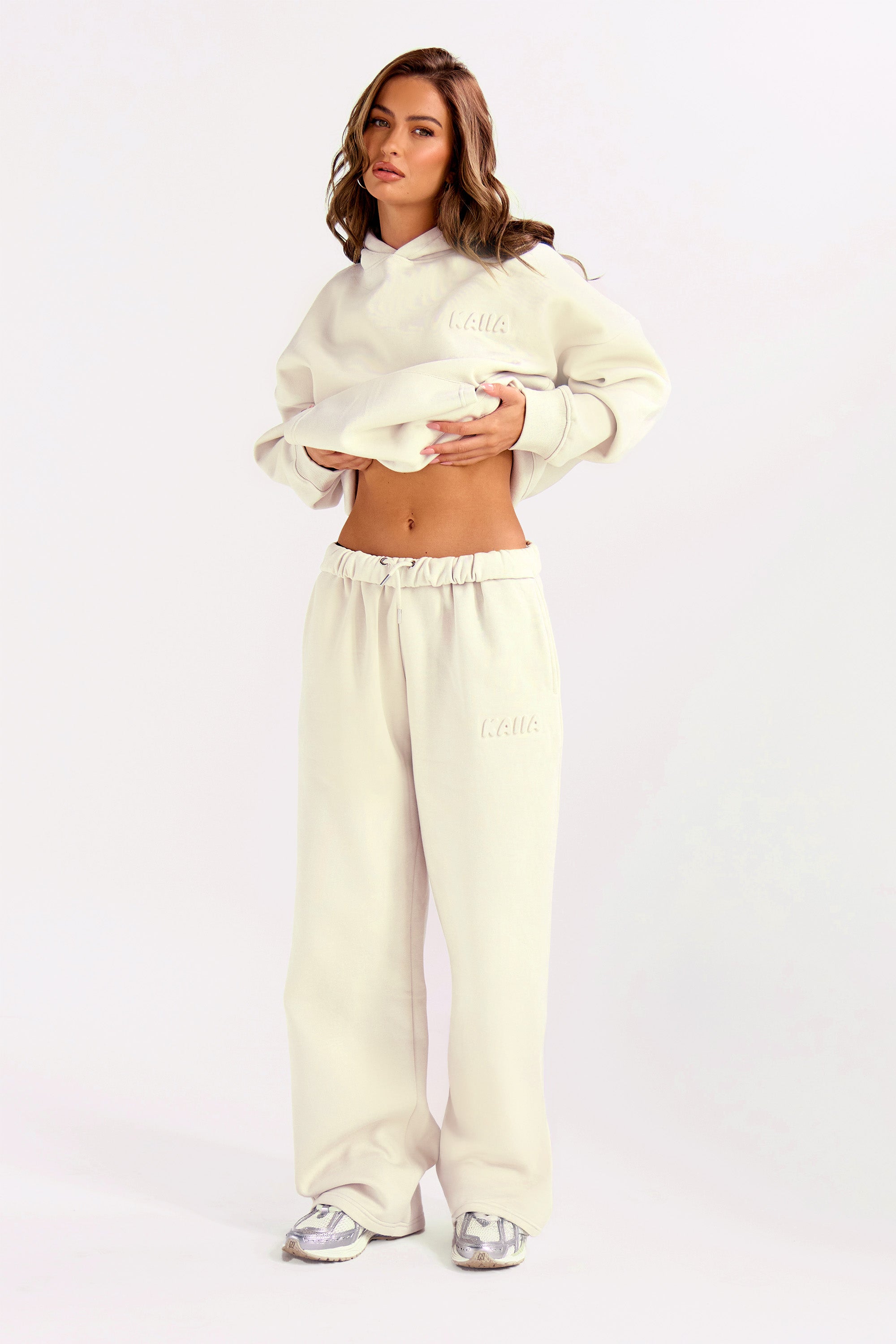 - Kaiia Embossed Bubble Logo Wide Leg Joggers Almond Milk