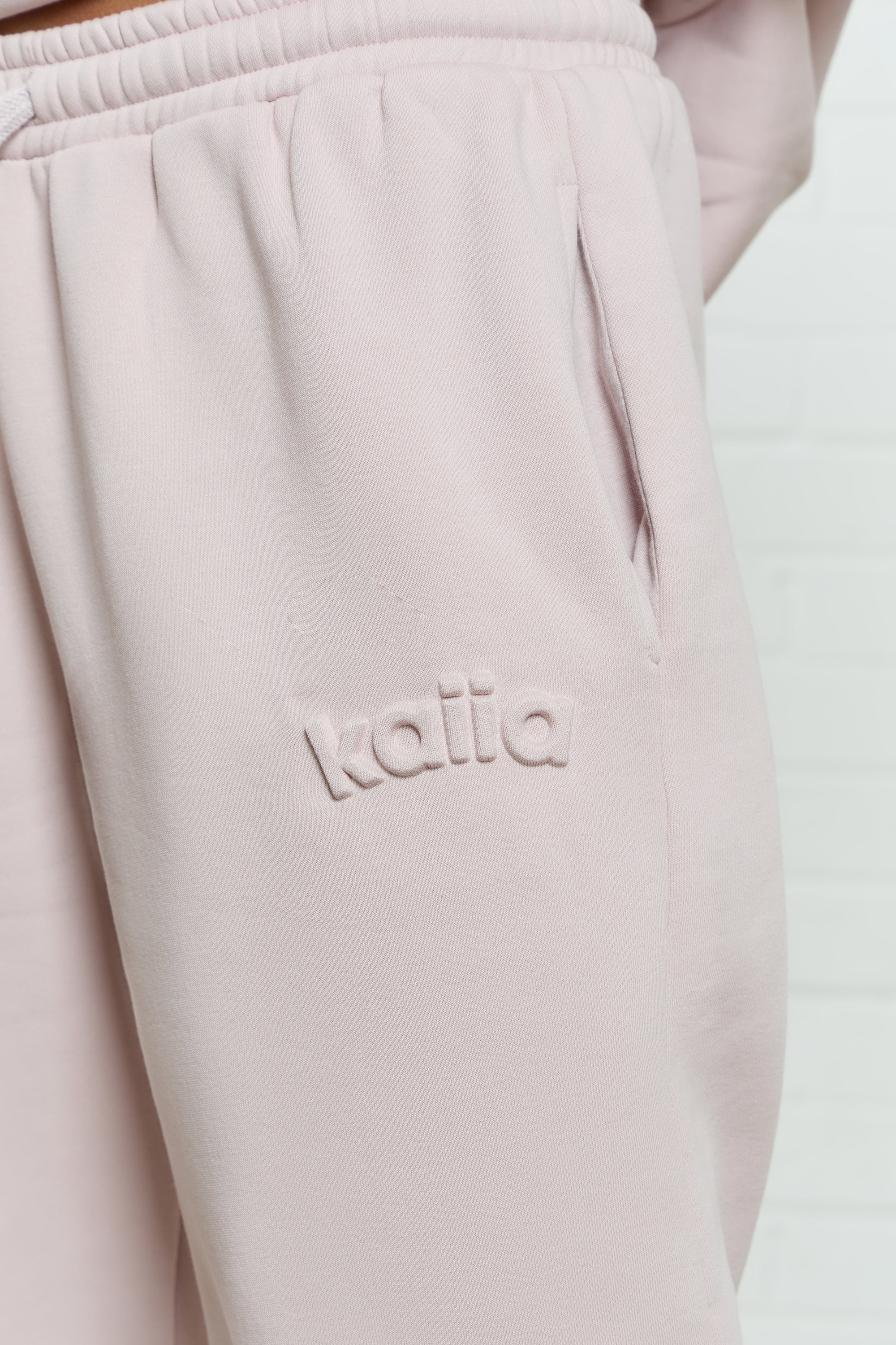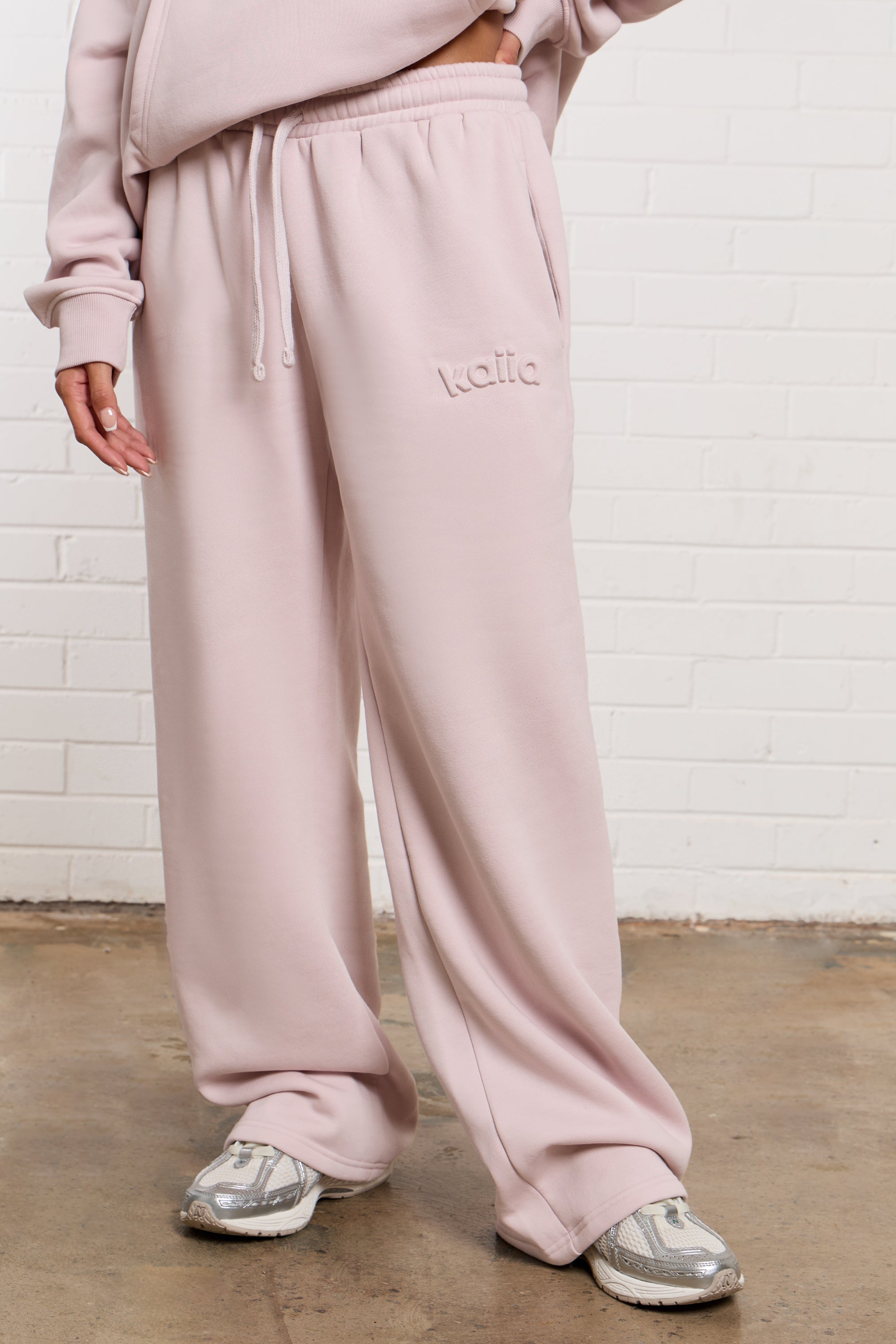 Kaiia Jeans Embossed Wide Leg Joggers Pale Dusty Lilac