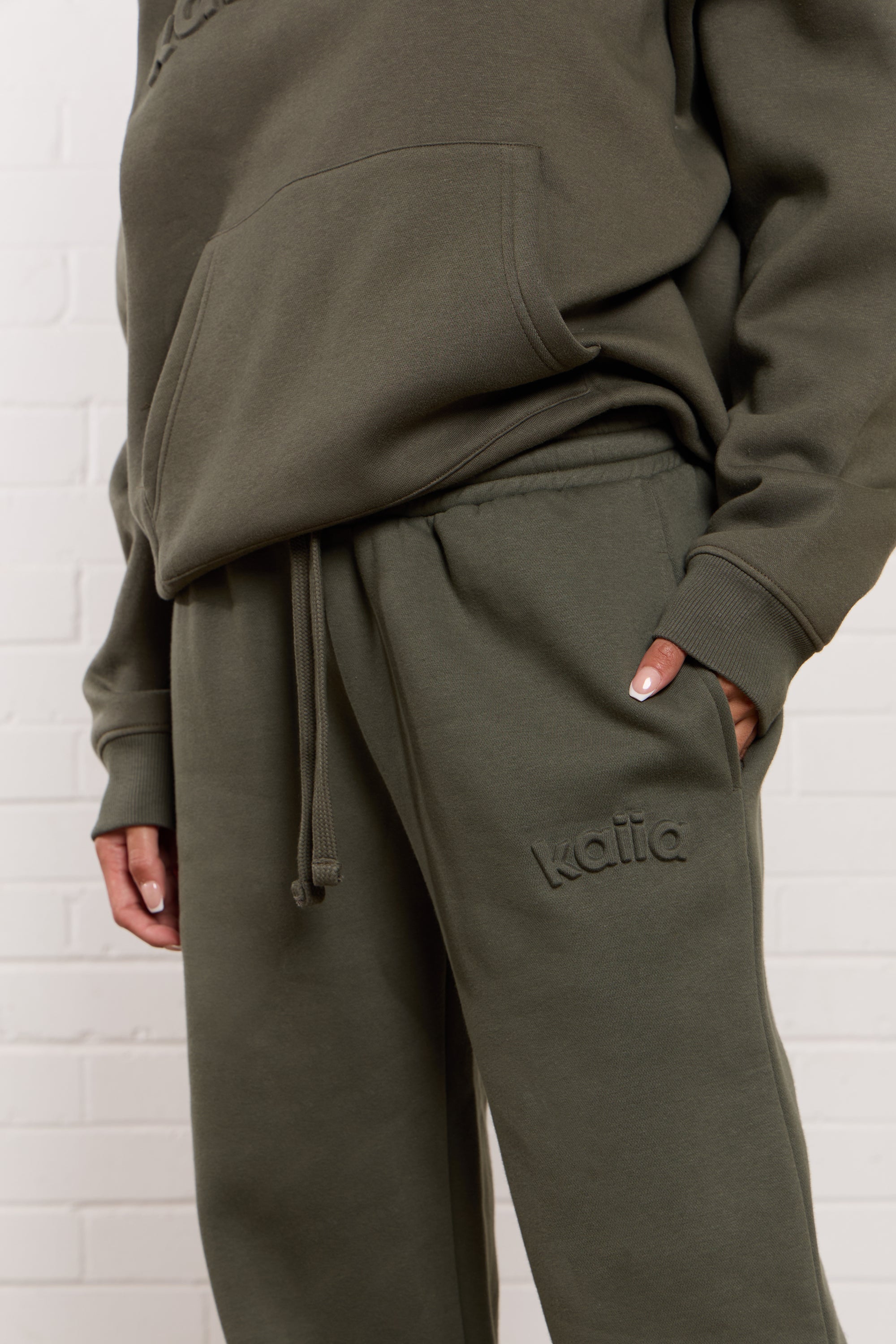 Kaiia Jeans Embossed Wide Leg Joggers Smoke Olive