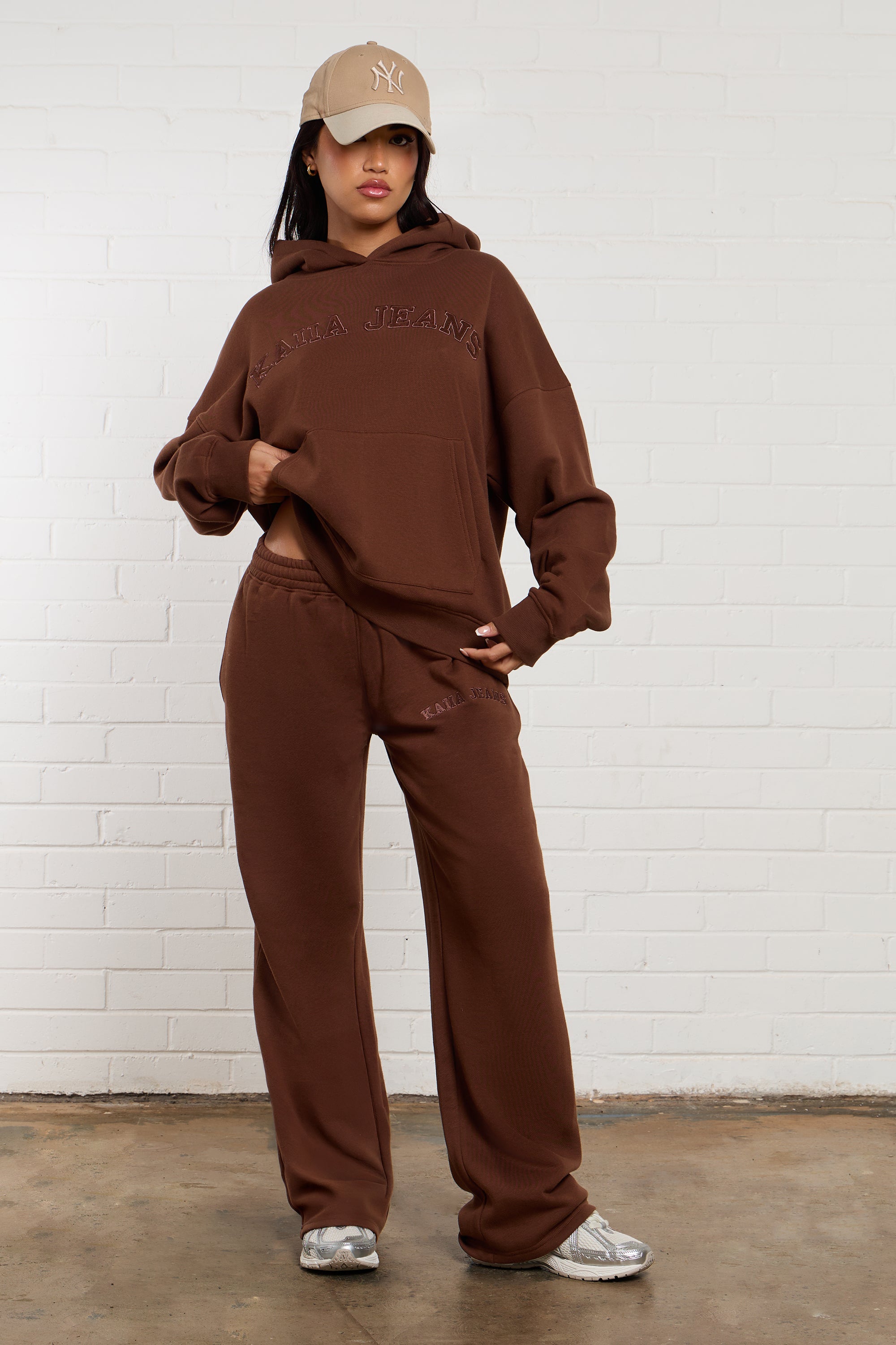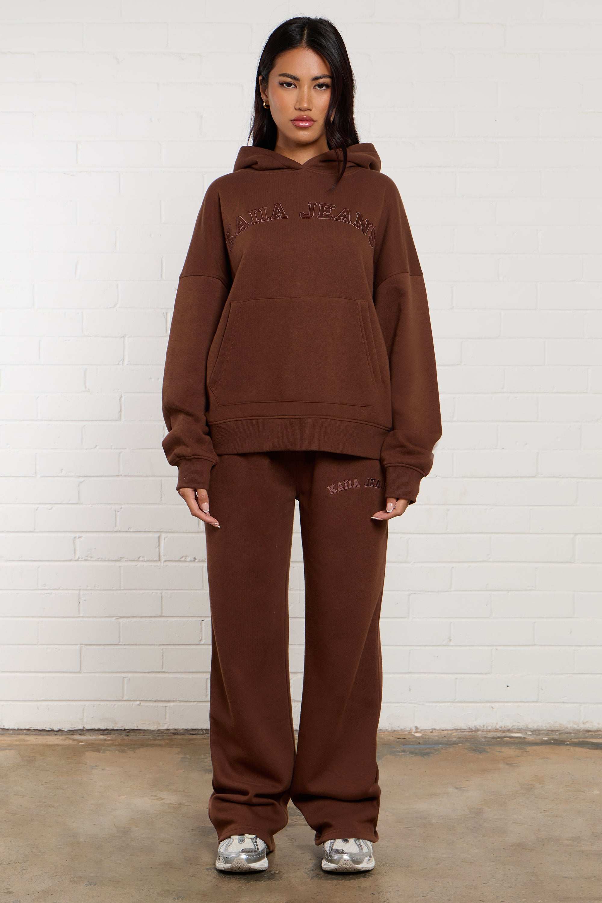 Kaiia Jeans Embroidered Wide Leg Joggers Chestnut