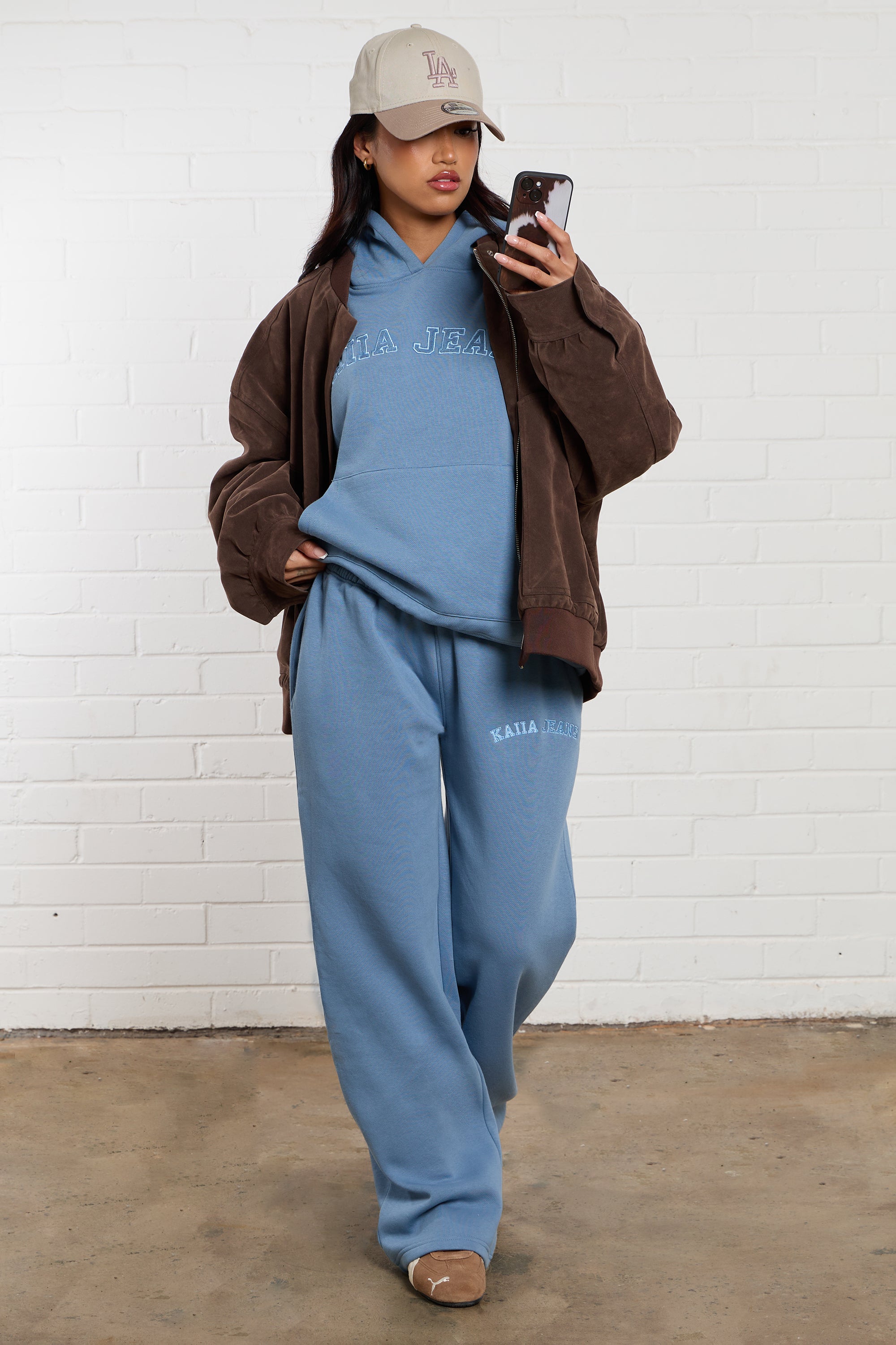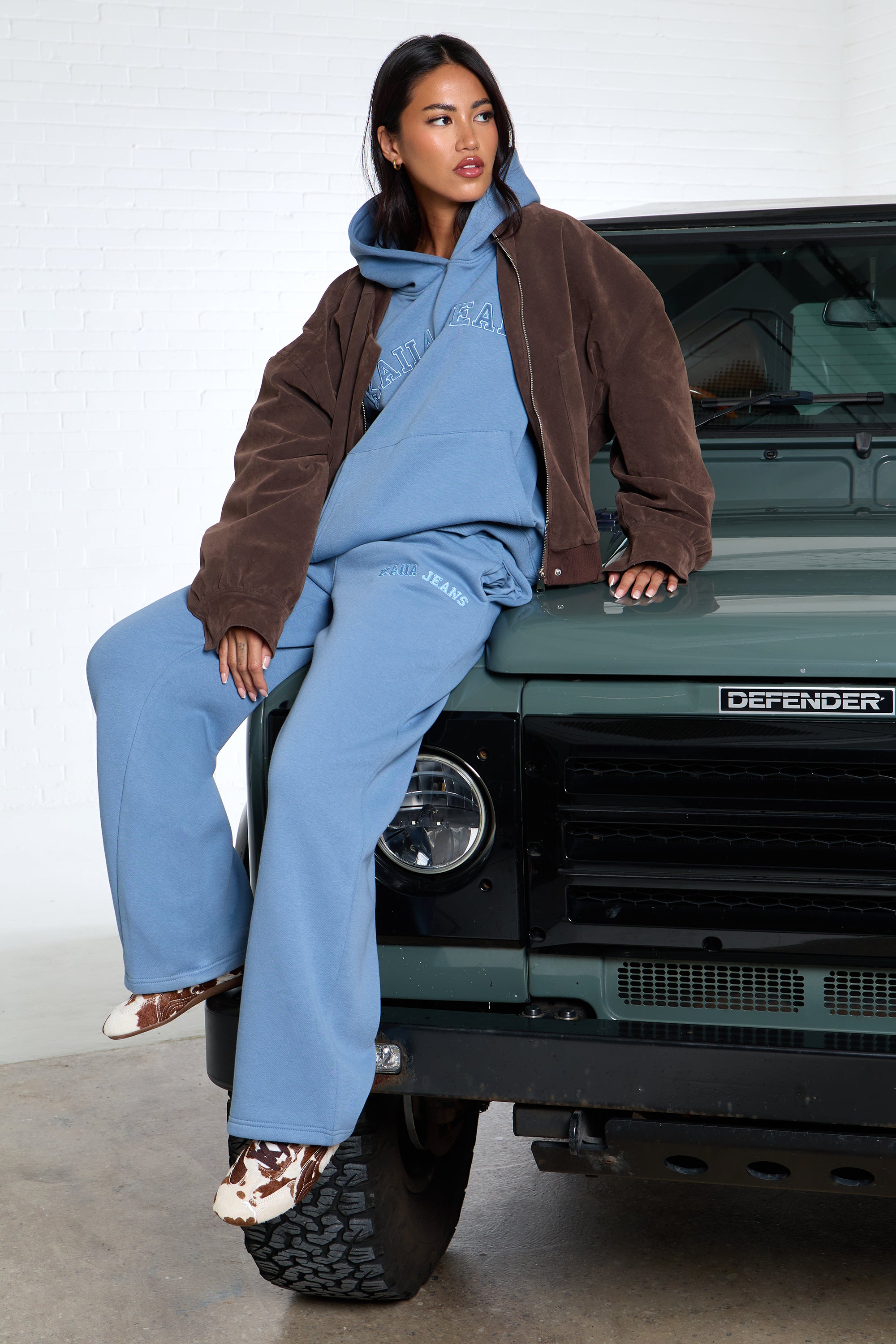 Kaiia Jeans Embroidered Wide Leg Joggers Denim Blue