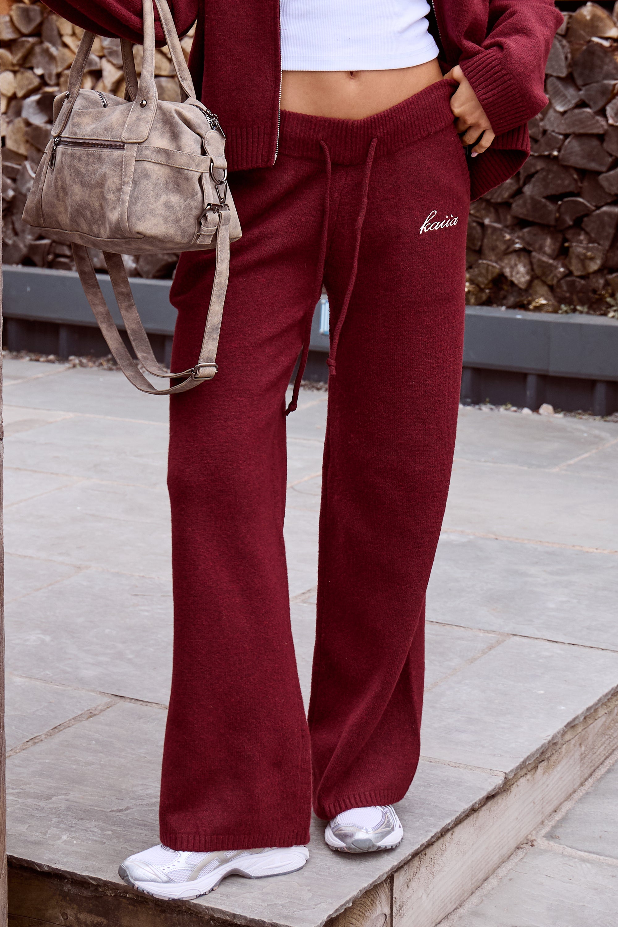 - Kaiia Knit Wide Leg Trousers Burgundy