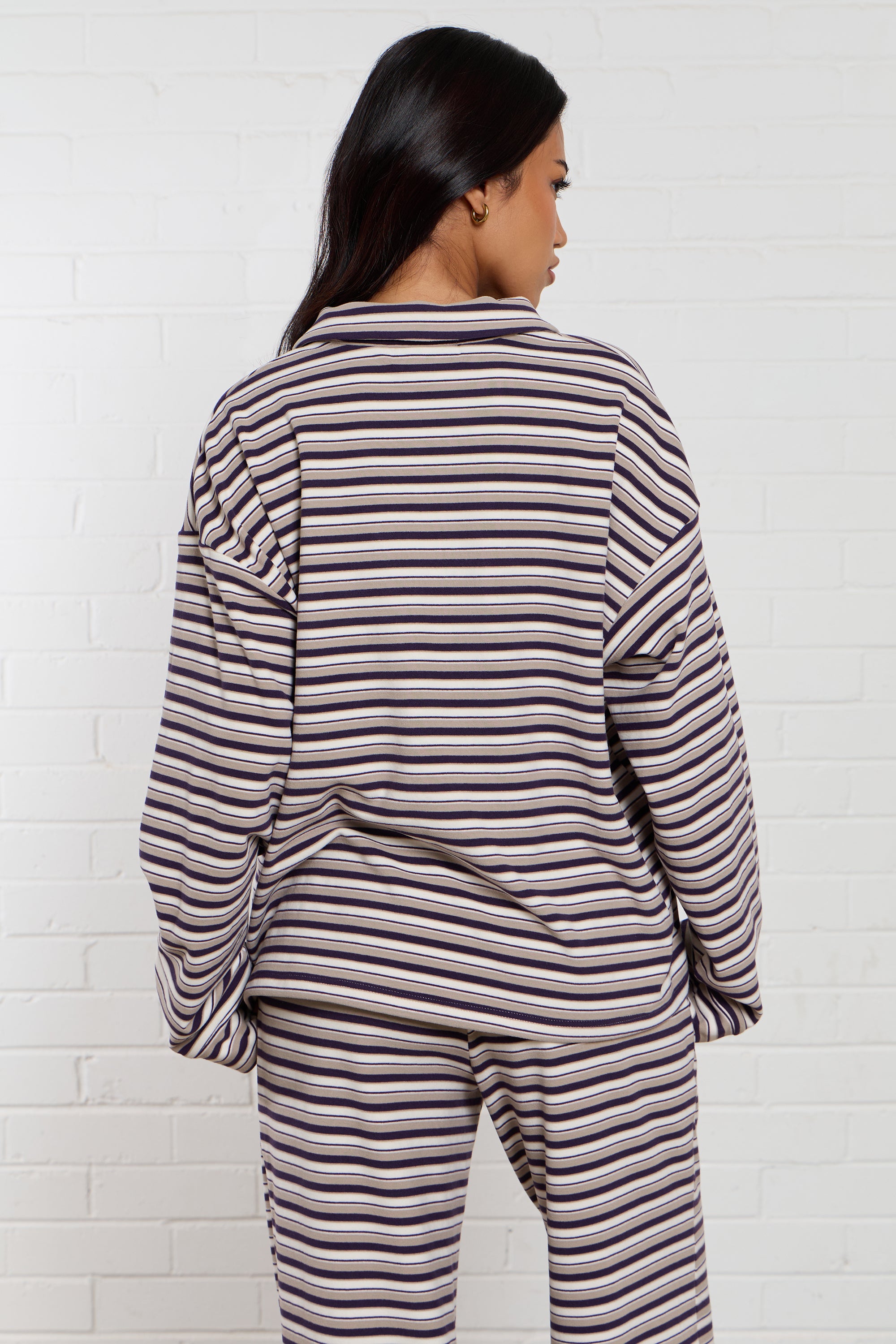 Kaiia Striped Fleece Wide Leg Trousers Black Multi