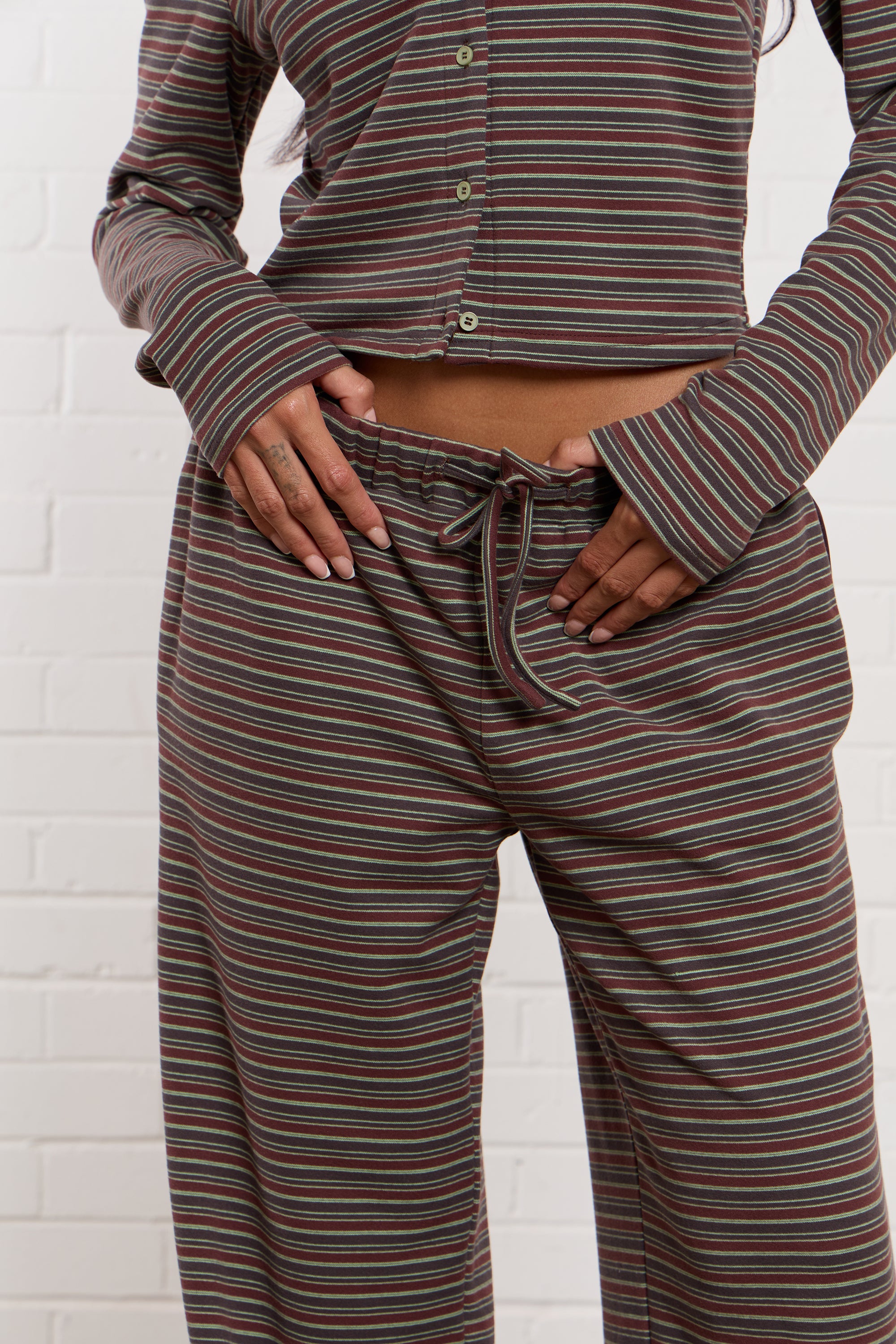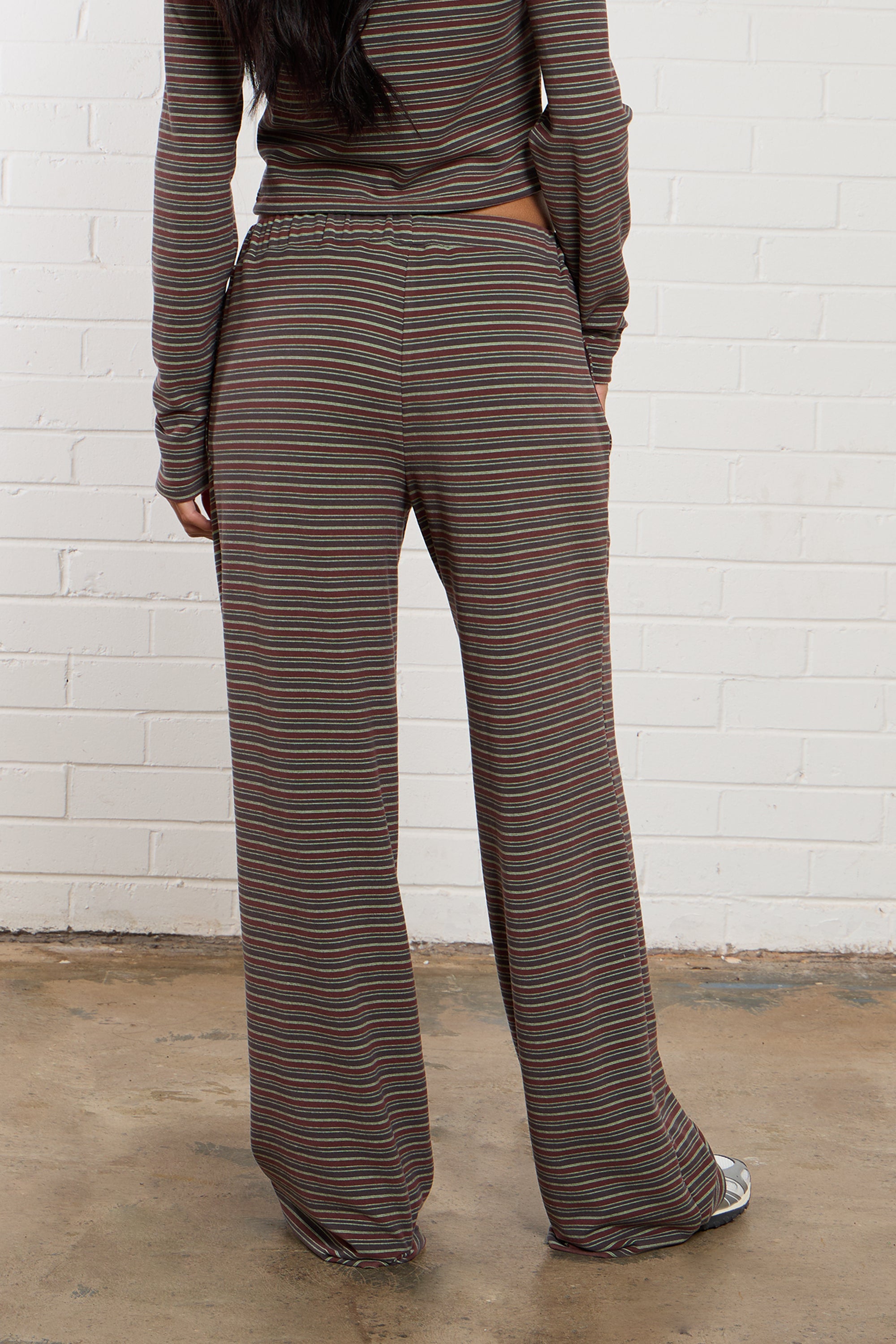 Kaiia Striped Fleece Wide Leg Trousers Brown Multi