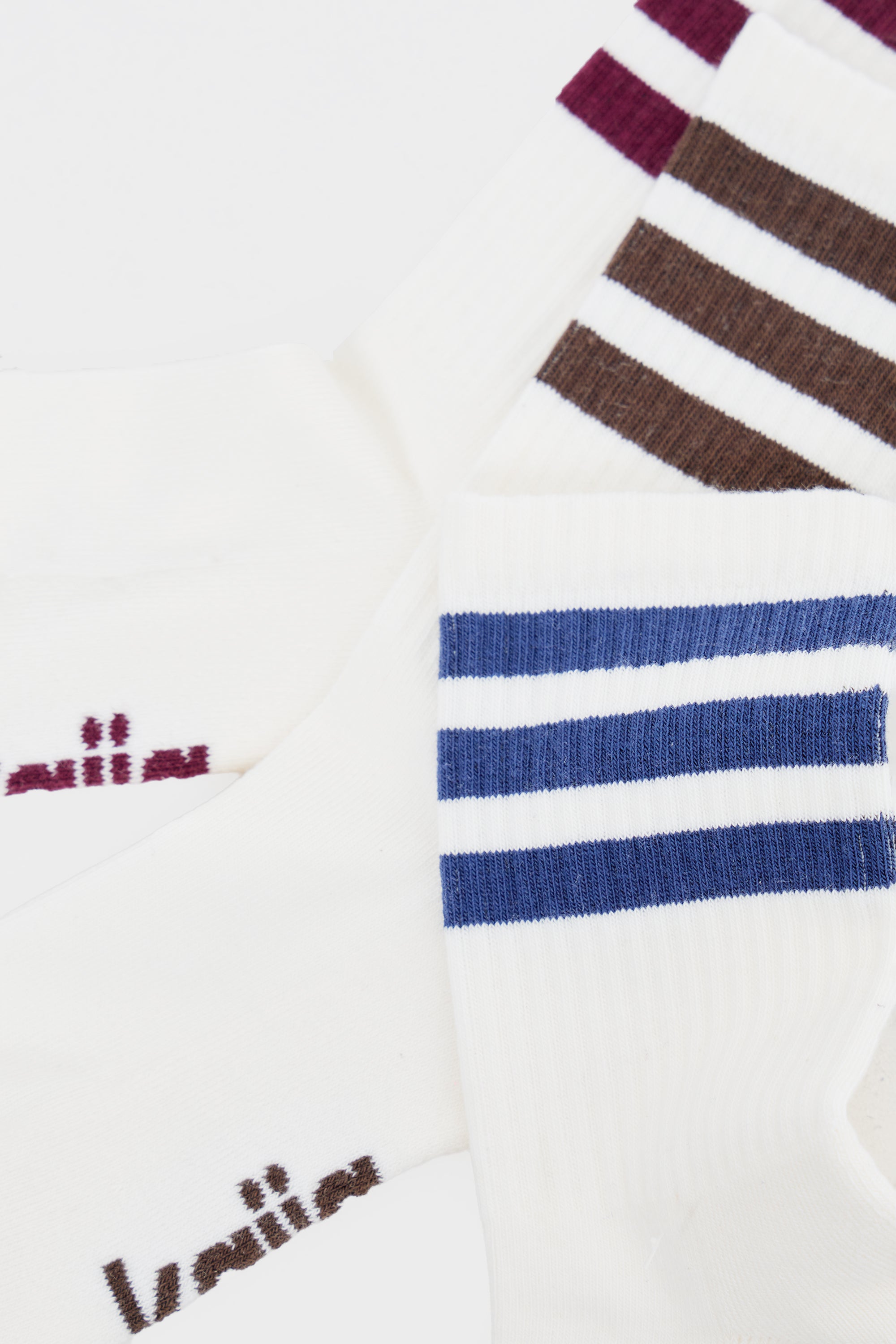 - Pack of Three Kaiia Sport Stripe Socks Burgundy, Navy & Chocolate